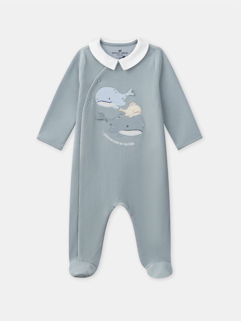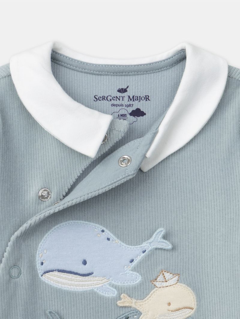 • Мека материя от памучна смес в основен син цвят, с мотив на китове