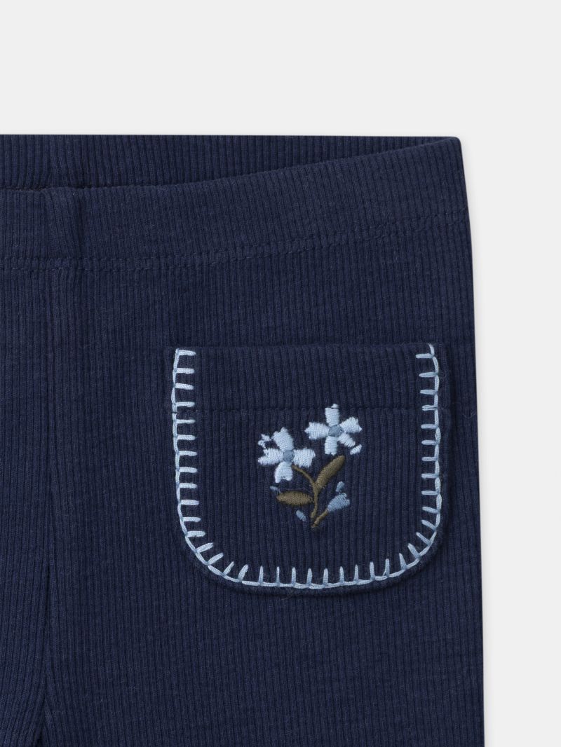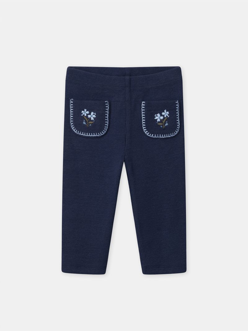 Идеален за активните дни на вашето малко съкровище, тези елегантен клин предлагат съвършен баланс между комфорт и стил. С нежни декоративни джобчета в предната част с флорални мотиви и кантове, те добавят изтънченост към всяка визия. Еластичната талия гарантира отлично прилягане и свобода на движение, правейки го идеален избор за всяко приключение с удобство и изисканост.