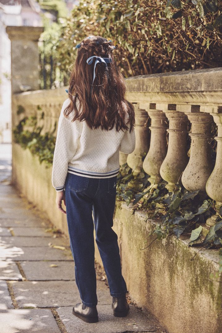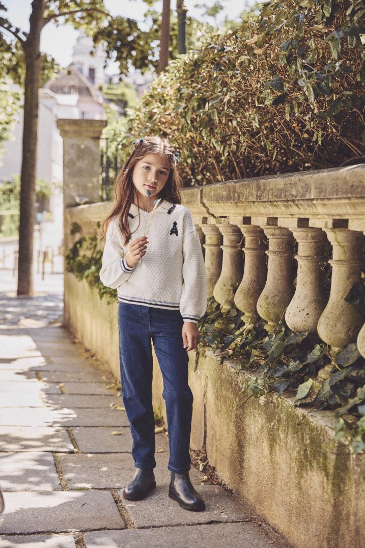 Тези стилни тесни дънки с бродерия са перфектният избор за активните малчугани. С 2 предни и 2 задни джоба с декоративни апликации, те предлагат практичност и изискан вид. Тяхната тясна кройка осигурява оптимален комфорт, като същевременно запазва модерен силует. Очарователните флорални бродериипридават закачлив и привлекателен акцент. Този модел е универсален вариант, който съчетава удобство и елегантност за всеки повод.