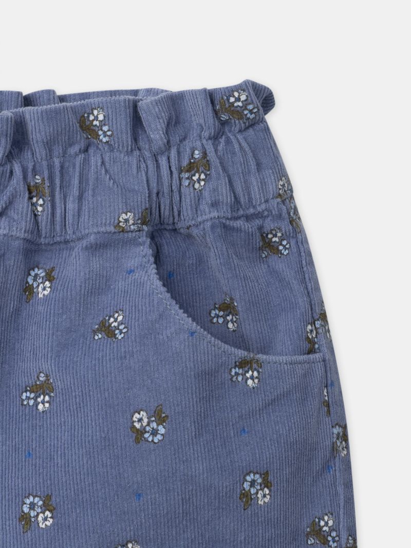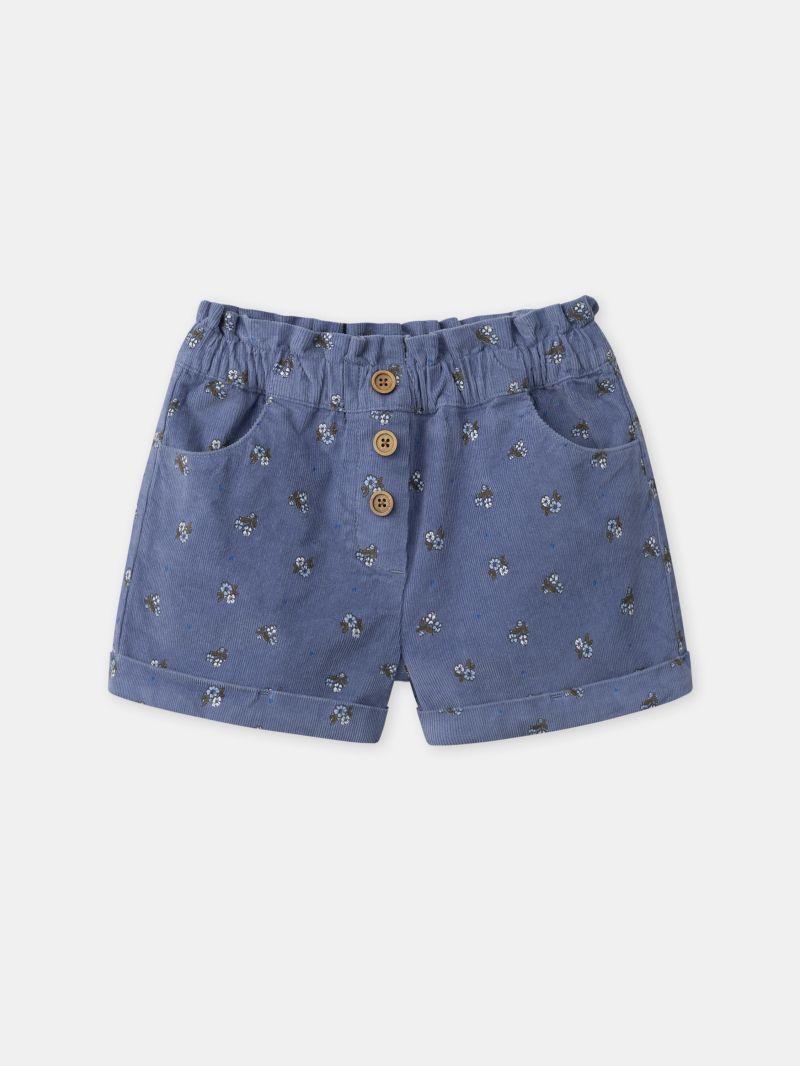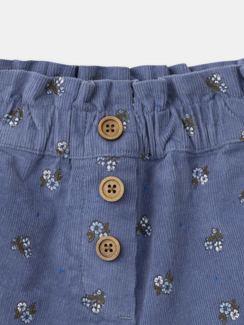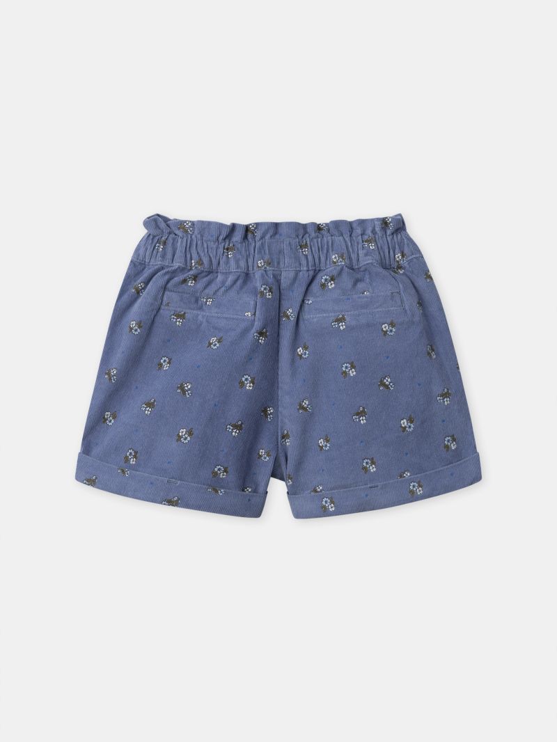 - Къси панталони от тъкан памук от меко кадифе в син цвят с флорален десен с вградена подплата