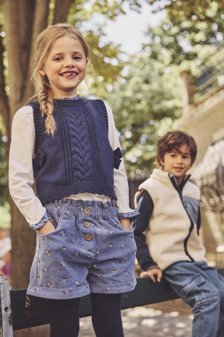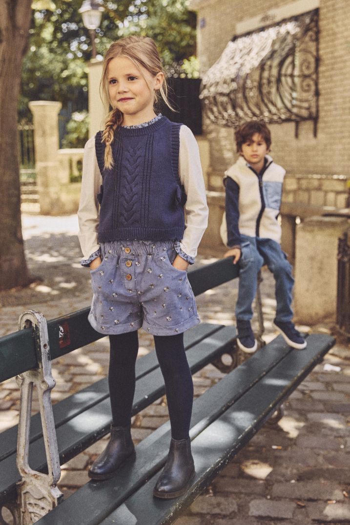 Къс панталон от рипсено кадифе с бродерия