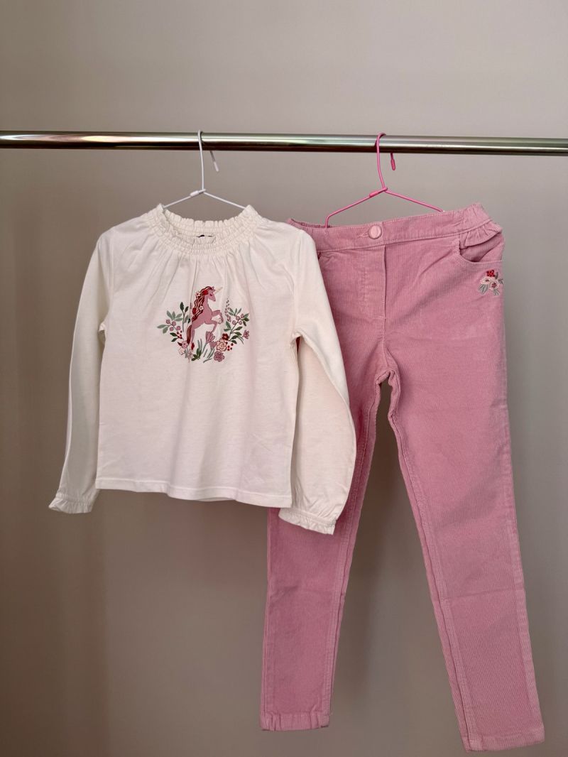 ДЕТСКИ КОМПЛЕКТ ОТ БЛУЗА И РОЗОВ ПАНТАЛОН