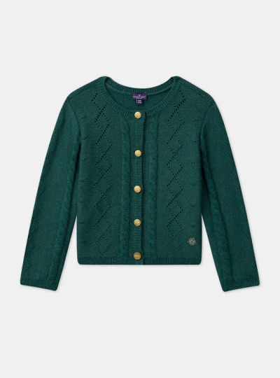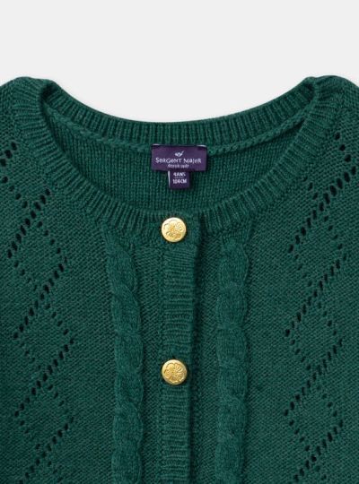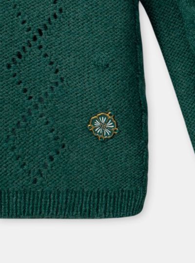 - Елегантна жилетка от фино плетиво с ажурни детайли в зелен цвят