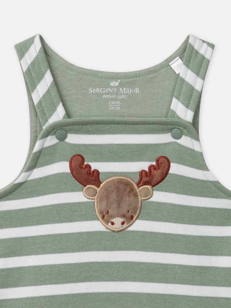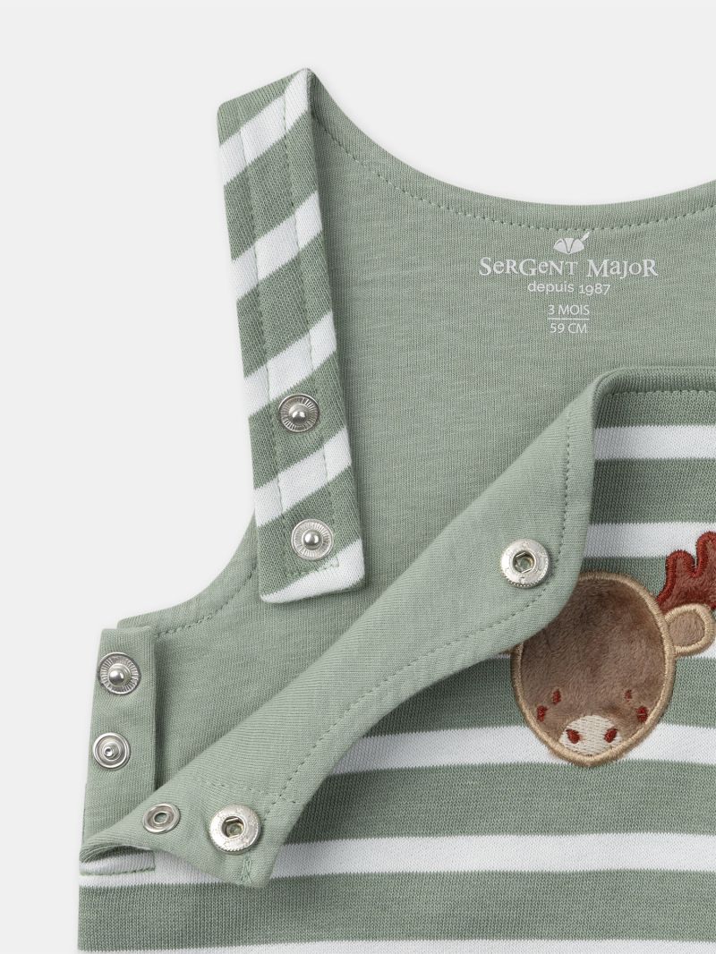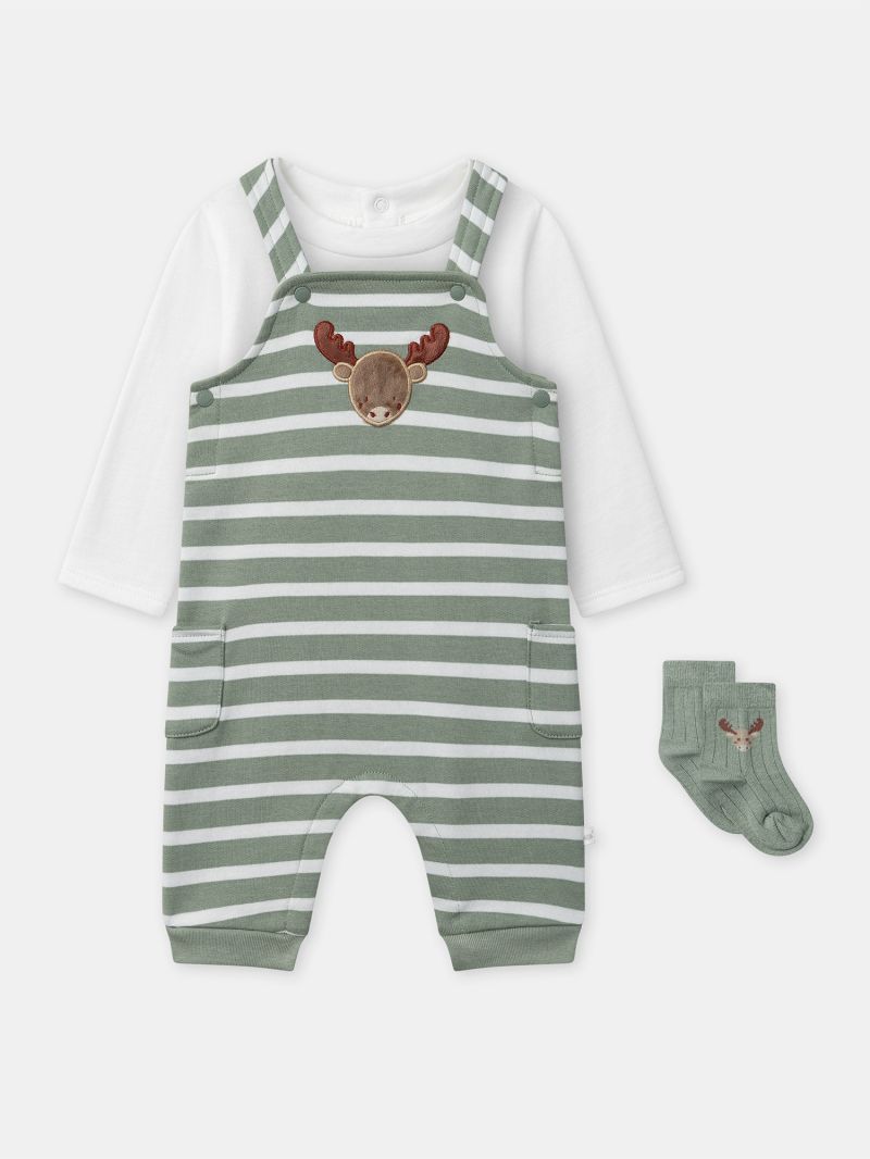Комплект от три части, боди, гащеризон и чорапи в цвят зелено