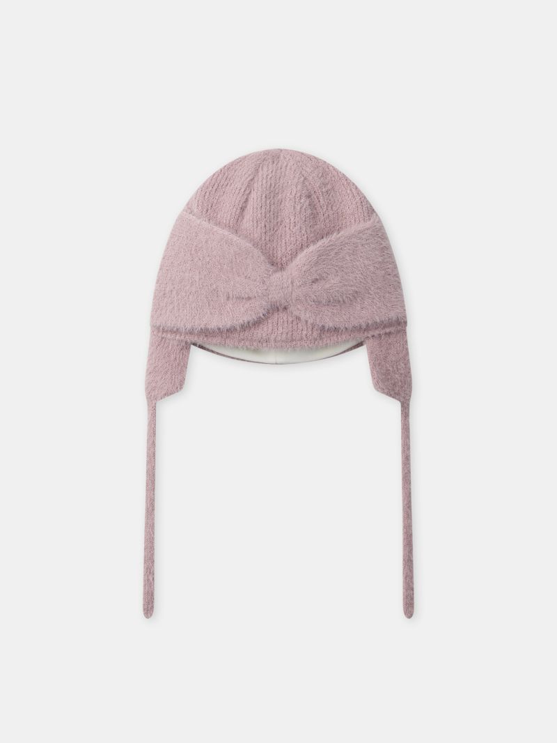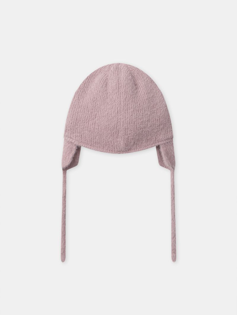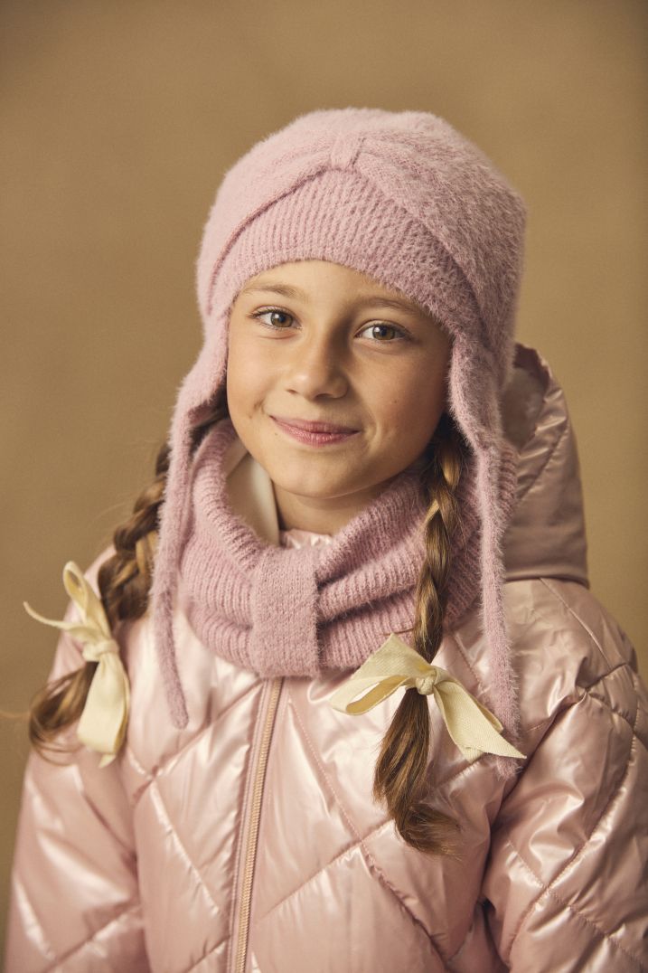 - Шапка от мека прежда в основен цвят пепел от рози