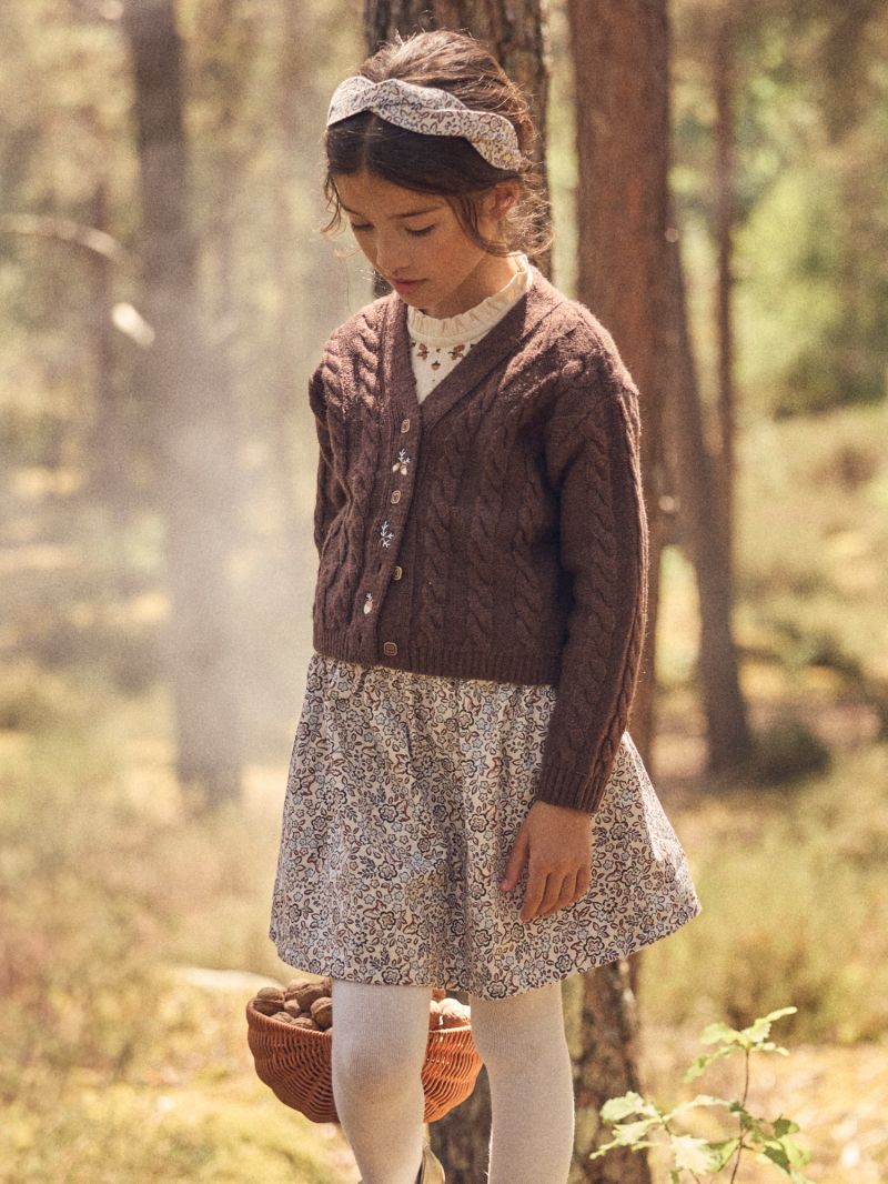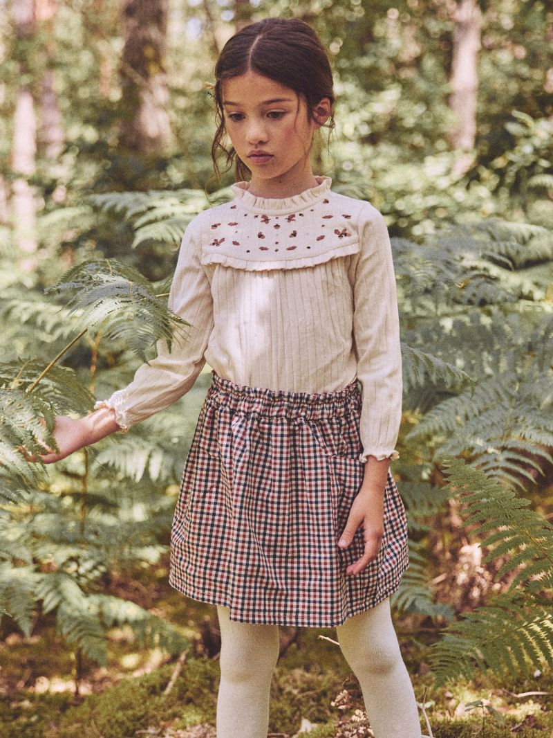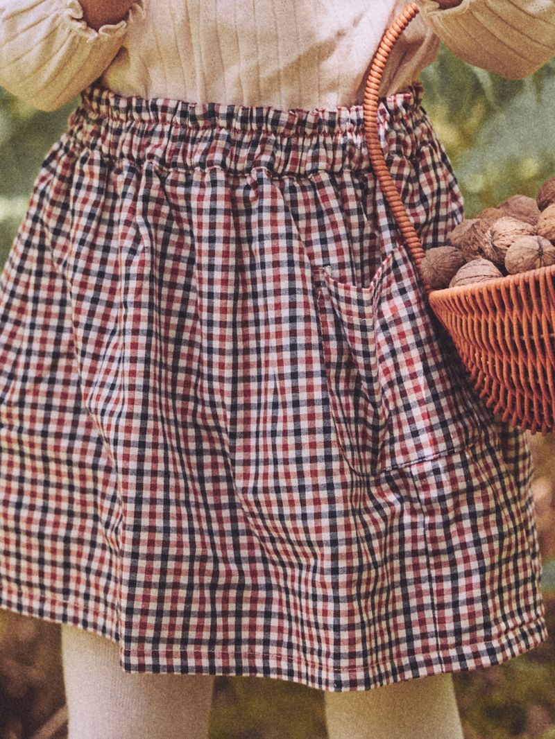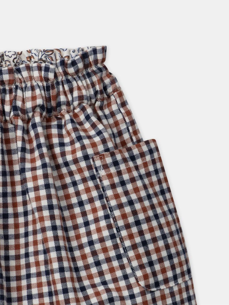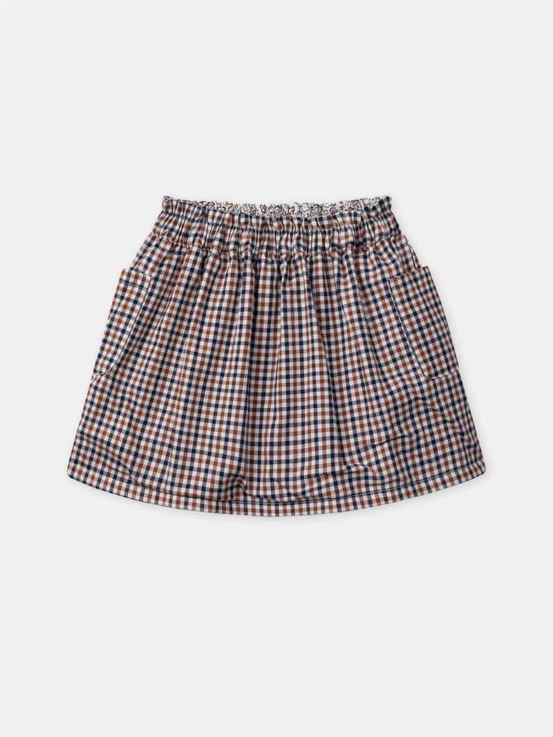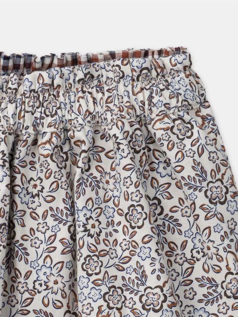 Тази двулицева пола предлага разнообразие в едно облекло. Страна A впечатлява с флорални мотиви, докато страна B е с десен на каре. Идеален избор за практичен и стилен ежедневен гардероб, който лесно се адаптира към различни визии за малки кокетки.