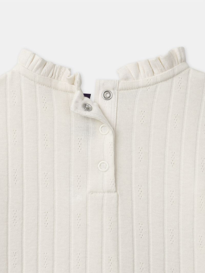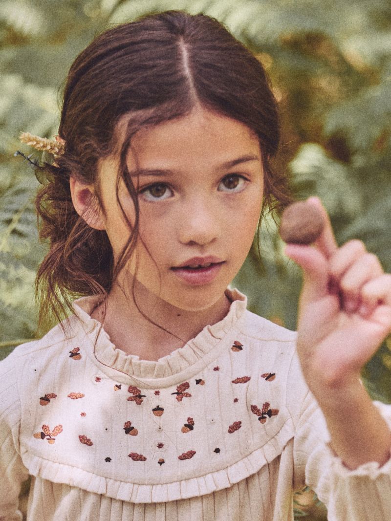 Тази блуза от памук е истинско съкровище с изящната си флорална бродерия на деколтето и нежни волани, които добавят фин чар на визията. Идеална за специални поводи или ежедневни моменти, тази дреха ще добави шикозен акцент към гардероба на всяко момиче, превръщайки я в задължителен елемент за всяка малка дама.