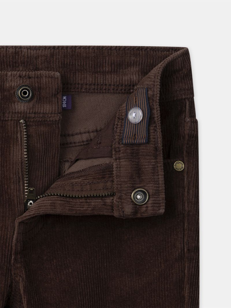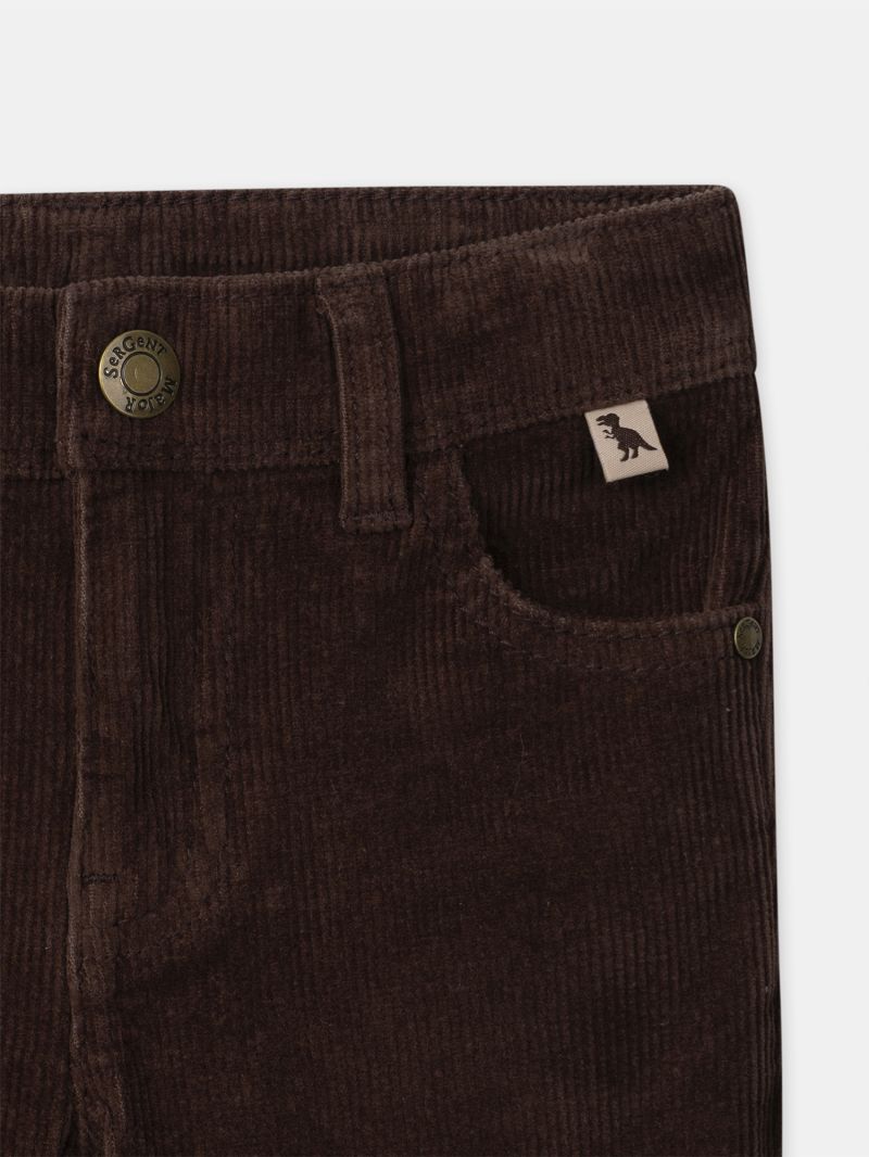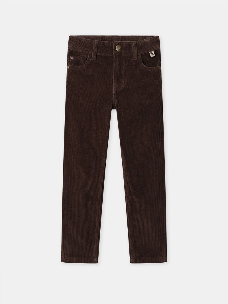 Този кафяв панталон от рипсено кадифе съчетава стил и практичност, което го прави идеален за всеки повод. С пет функционални джоба, той предлага достатъчно място за съхранение на малки вещи. Двата предни джоба включват мини джоб, който е перфектен за съхранение на монети или други дреболии. Изработен от мека кадифена материя, панталонът осигурява комфорт и свобода на движение, идеалнен за активни малчугани. С този панталон всяко момче ще се чувства удобно и стилно, независимо дали е на училище, на игра или на специално събитие.