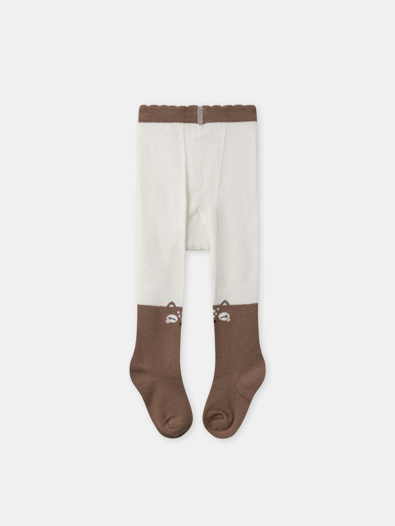- Чорапогащи от мека памучна смес с фина плетка в основеен бежов цвят и екрю цвят с ефектни кафяви детайли