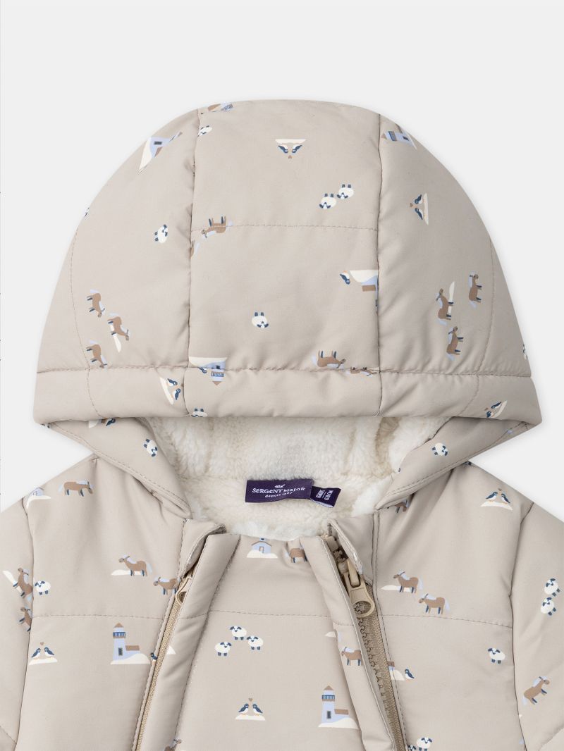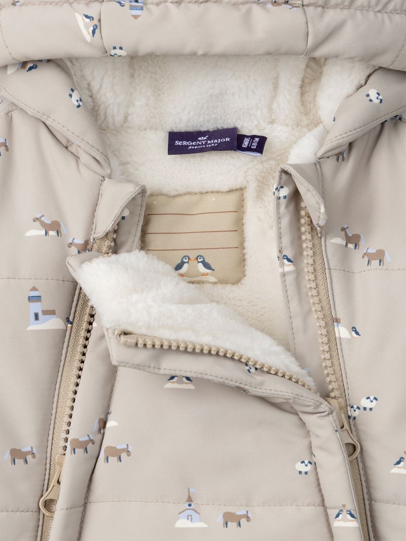- Космонавт с мека и топла мъхеста материя в цвят екрю с подплата с десен на животни