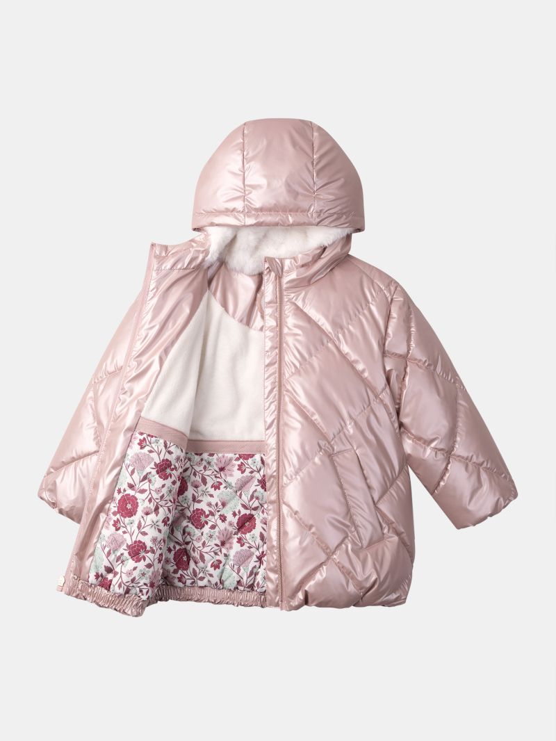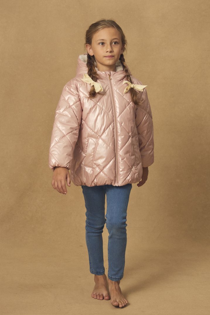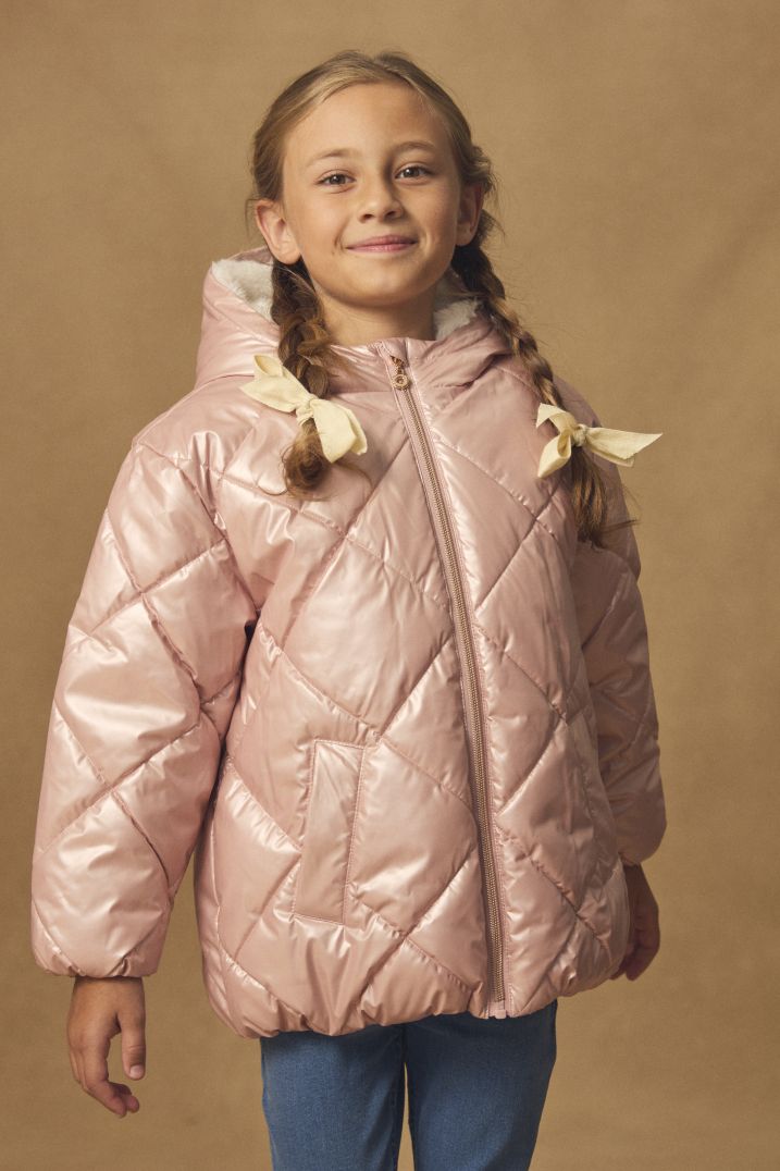- Лъскаво, ватирано яке в основен розов цвят, с топла подплата