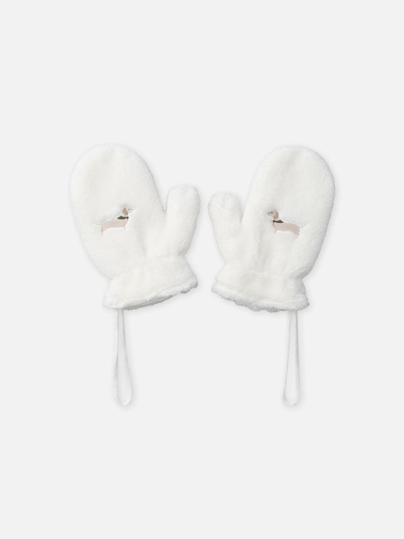 - Ръкавици с един пръст в бял цвят с бродиран мотив на дакел
