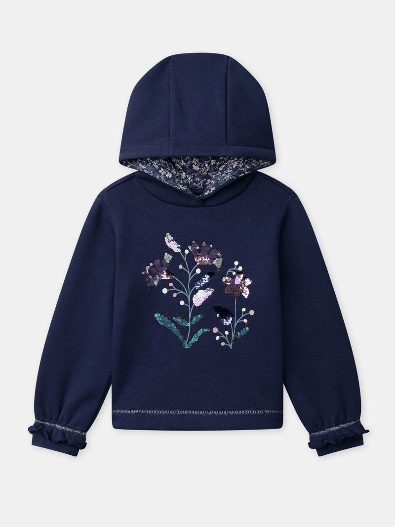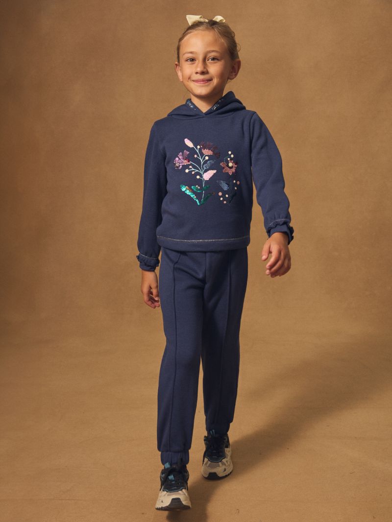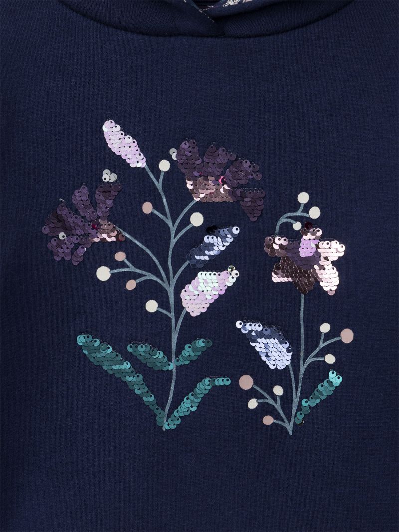 За малките принцеси, които обичат да играят, този суичър е перфектен за студените дни на есента и зимана. Веселите флорални мотиви с мъниста създават ярка и забавна визия. Качулката придава стил и удобство, правейки го идеален за всички ежедневни игри и приключения.