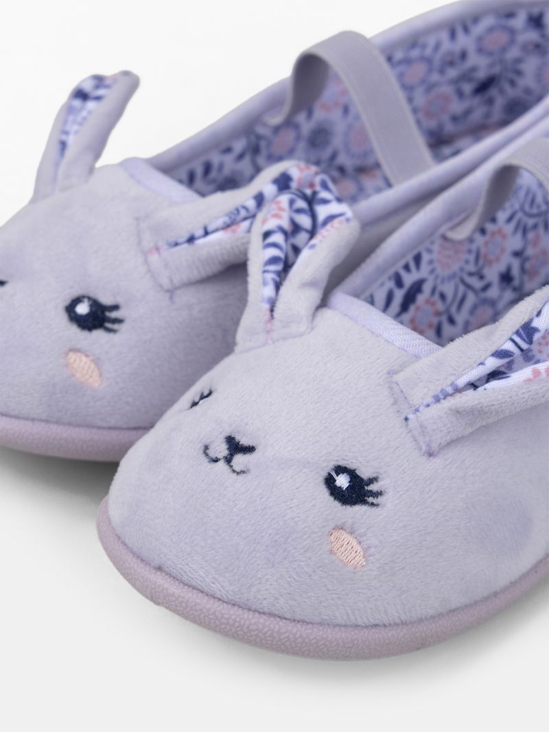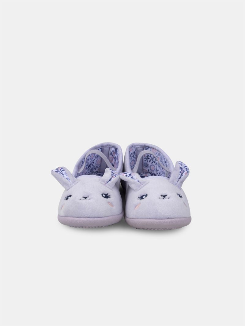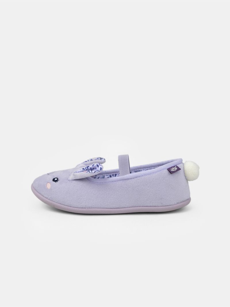 Представяме ви пантофки тип балерина – перфектният избор за малките принцеси! Тези лилави пантофи са не само изключително стилни, но и удобни. Вътрешността им е декорирана с красиви флорални мотиви, които добавят свежест и нежност към дизайна. Горната част на пантофките са декорирани с бродиран мотив на зайче с 3D ушички, което ще зарадва всяко дете. Формата на балеринка и еластичната лента отгоре осигуряват отлично прилягане към крачето, а меката подметка гарантира комфорт и лекота. Идеални за игри у дома или за разходка в градината.