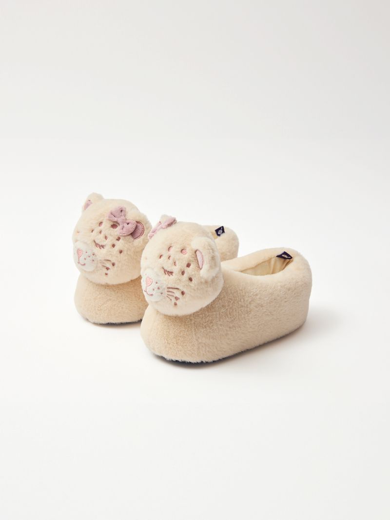 - Меки домашни пантофи с бродиран мотив и 3D апликация на ушички
