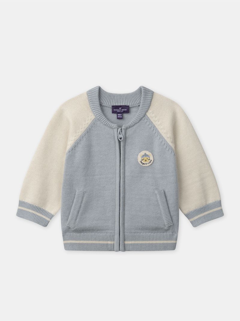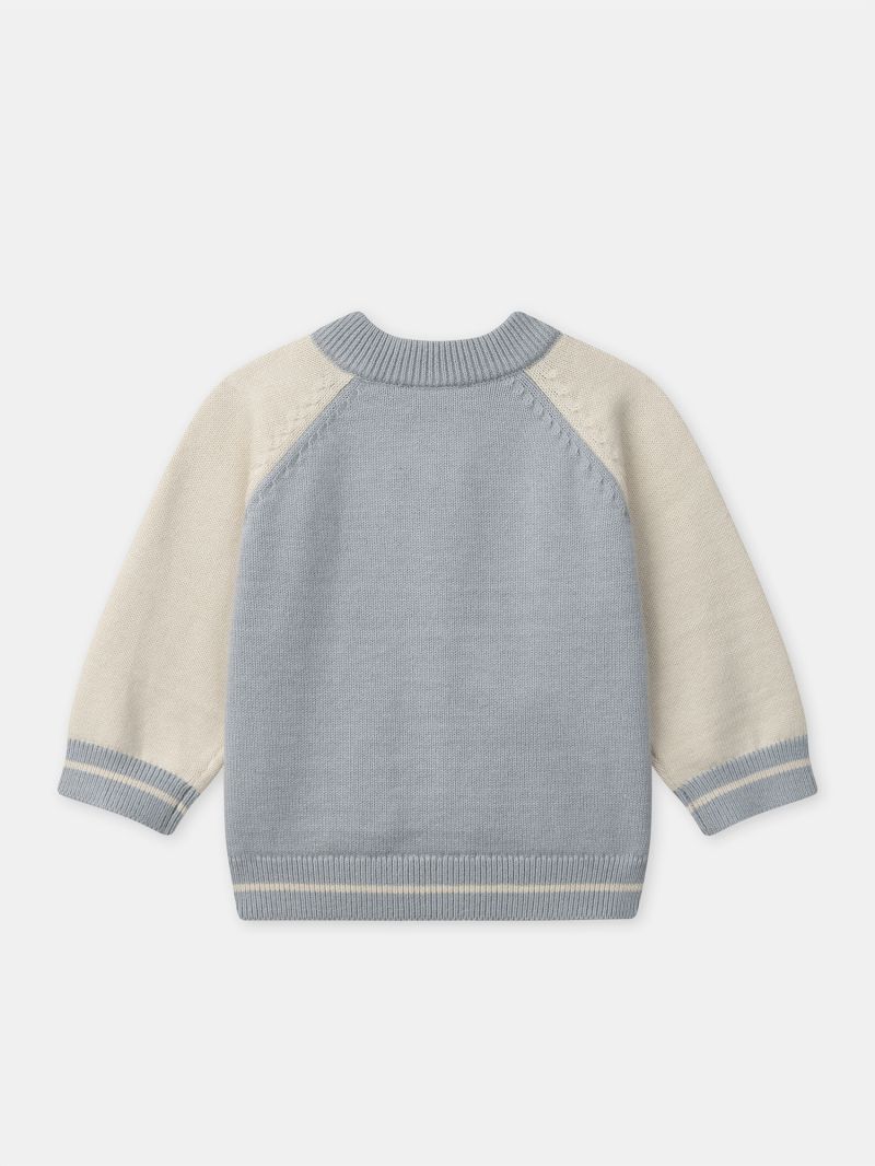 За малките, които обичат да се открояват със забавни и игриви детайли, тази жилетка с V-образно деколте е идеалният избор за по-хладните дни. В основен светлосин цвят с контрастни ръкави в цвят екрю тази плетена жилетка осигурява удобство през целия ден. Откопчаването с цип добавя елегантен и практичен акцент, правейки жилетката лесна за носене и идеална както за ежедневие, така и за по-специални поводи.