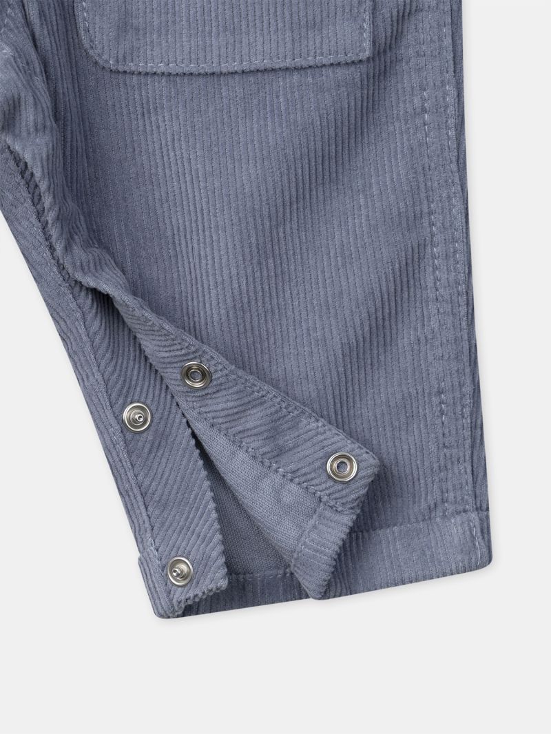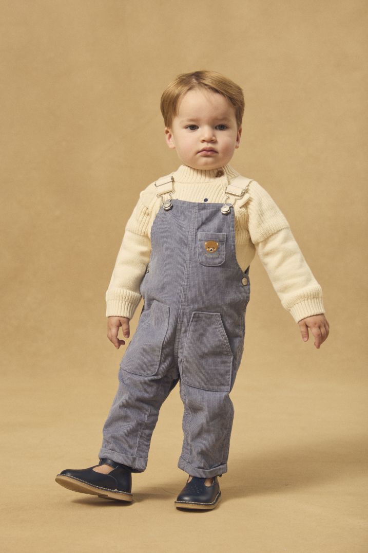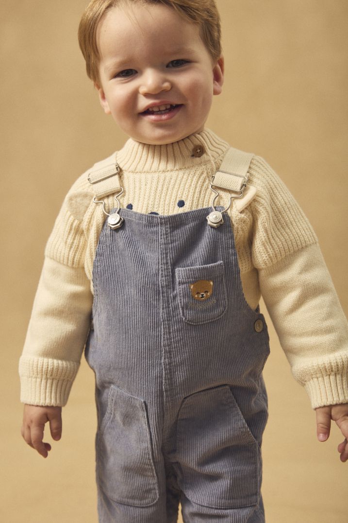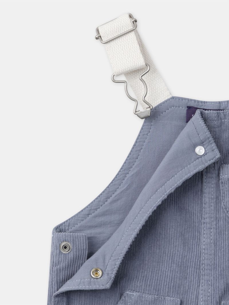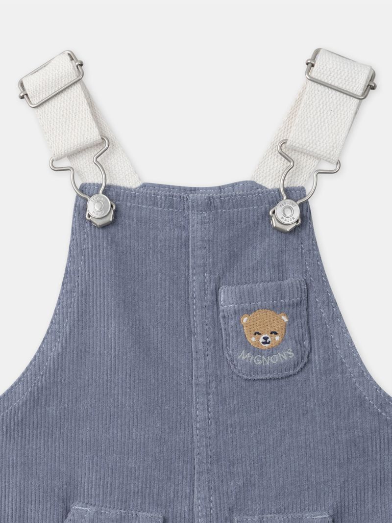 Този гащеризон от памучно кадифе e идеален модел, който осигурява комфорт и удобство на вашето малко съкровище, без да ограничава неговите движения. Украсен с малък джоб отпред с бродирана мотив на мечешка муцунка в бежови и светлокафяви тонове.  Регулируемите презрамки гарантират перфектно прилягане към тялото на вашето дете, а закопчаването на дъното и от вътрешната страна на крачолите позволява по-лесно обличане.