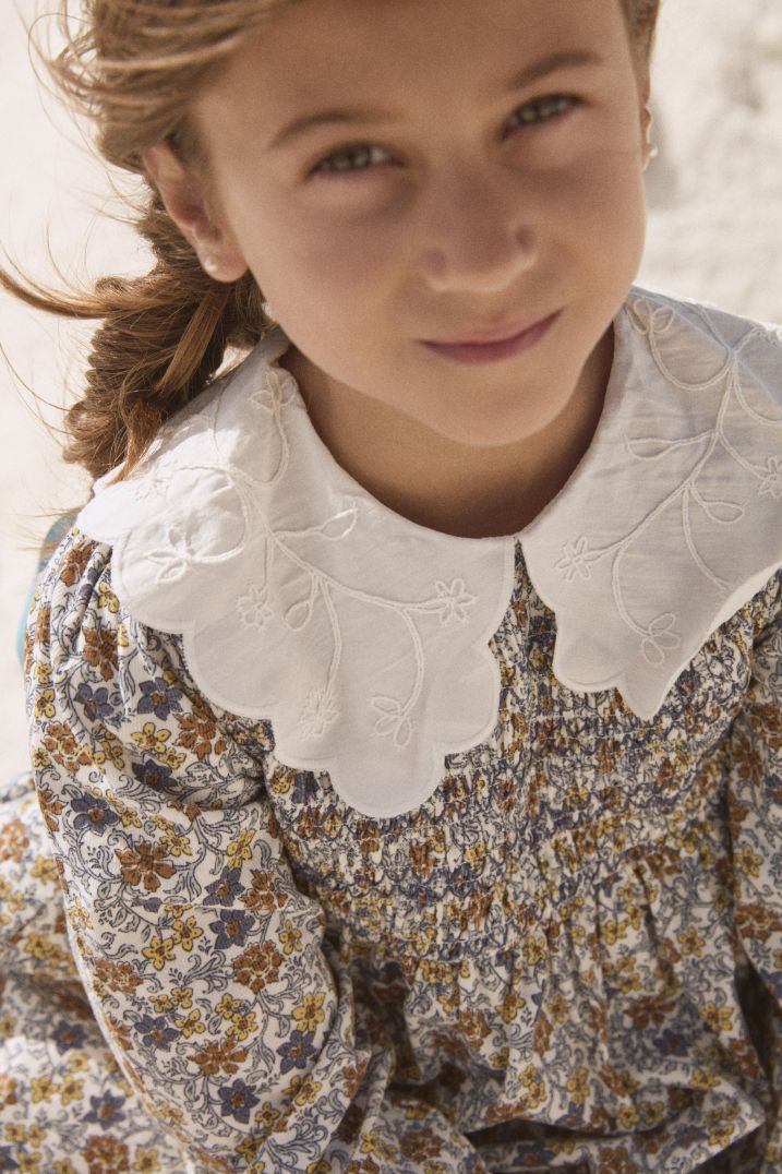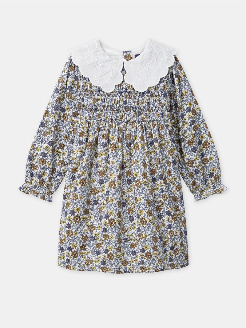 Тази рокля с флорален десен, с яка Claudine е идеален избор за стилни малки дами през цялата година. Изработена от мека памучна материя, тя предлага изключителен комфорт и издръжливост. Яката с нежна английска бродерия и еластичните маншети придават изисканост, докато широкия волан в долната част добавя игрив и елегантен акцент. Перфектен избор за очарователен външен вид.