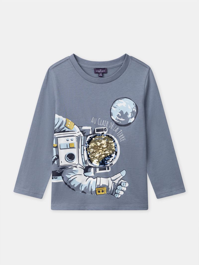 Изработена от мек памук, нашата блуза с мотив на космонавт предлага комфорт и свобода на движение през целия ден, като в същото време добавя стил и шик към облеклото.
