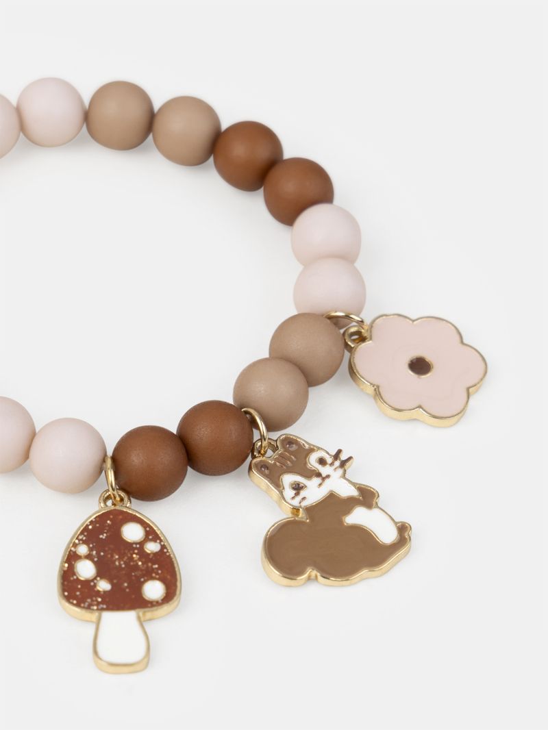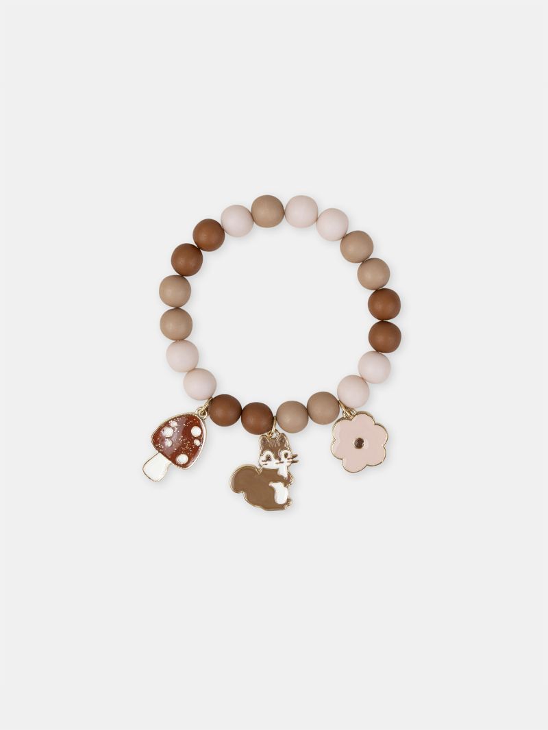 - Украсена с малки мъниста и три талисмана - гъбка, цвете и катеричка, които добавят нотка на сладост и капризност