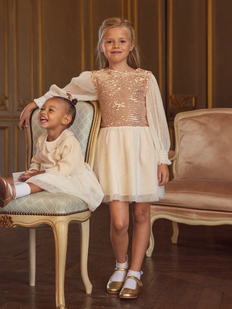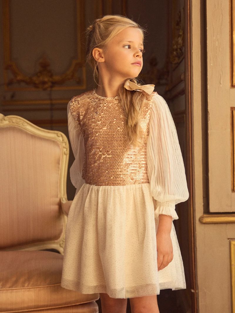 Създадена за незабравимите зимни моменти, тази официална детска рокля съчетава стил и комфорт.
