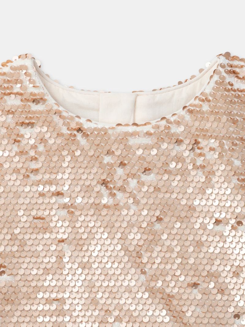 Меката памучна подплата осигурява уют, а ефирните тюлени ръкави и долната част с блестящи пайети придават приказна визия.