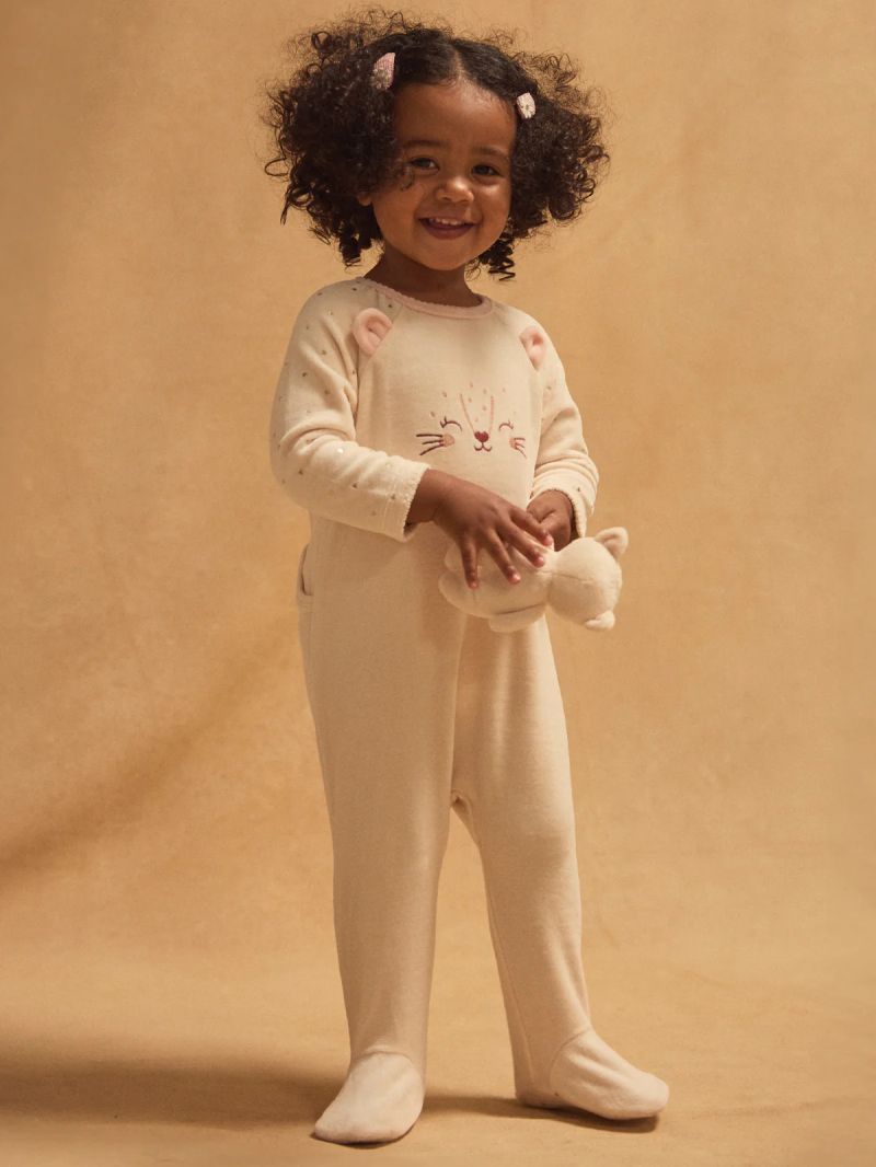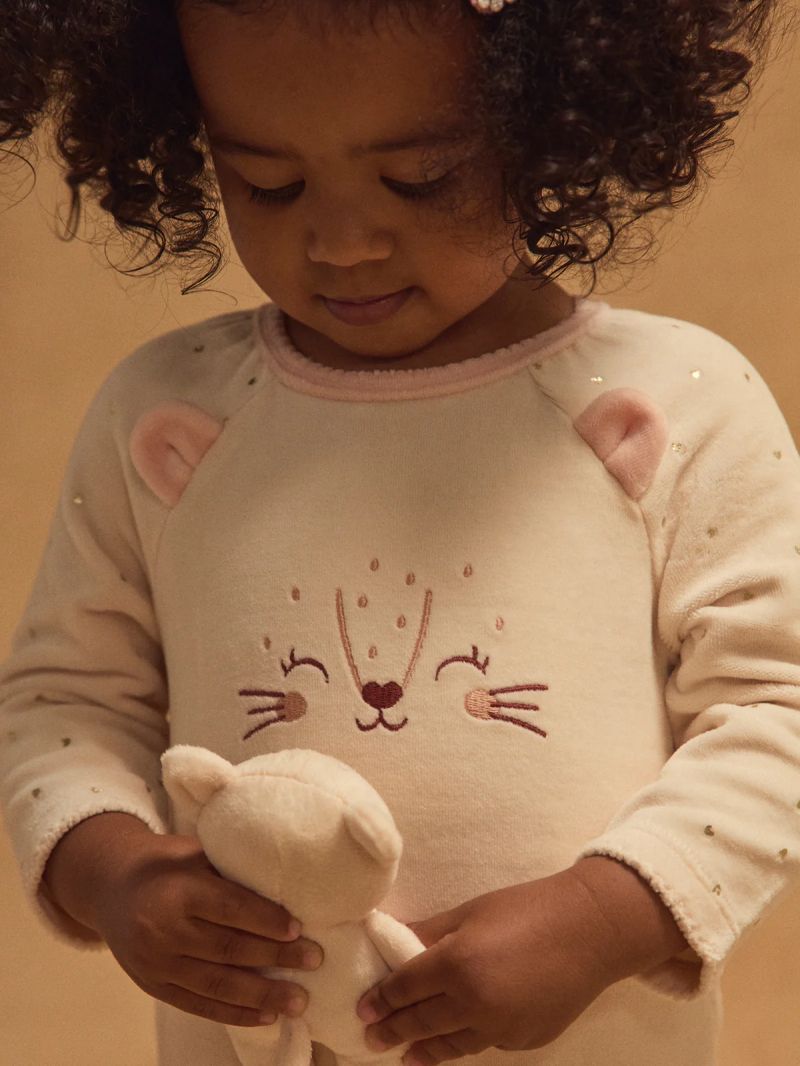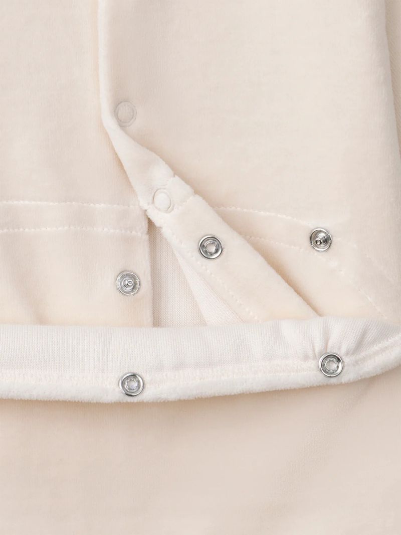 • Идеален за зимните нощи, този бебешки ромпър от органичен велур дарява мекота и уют.