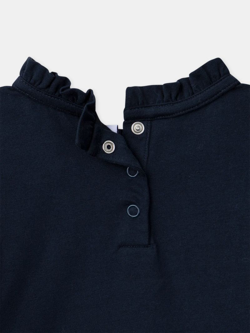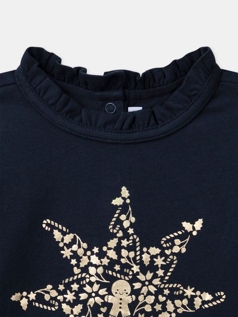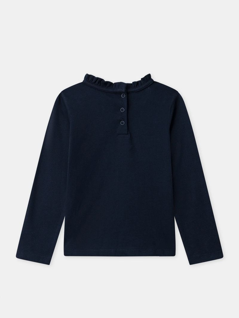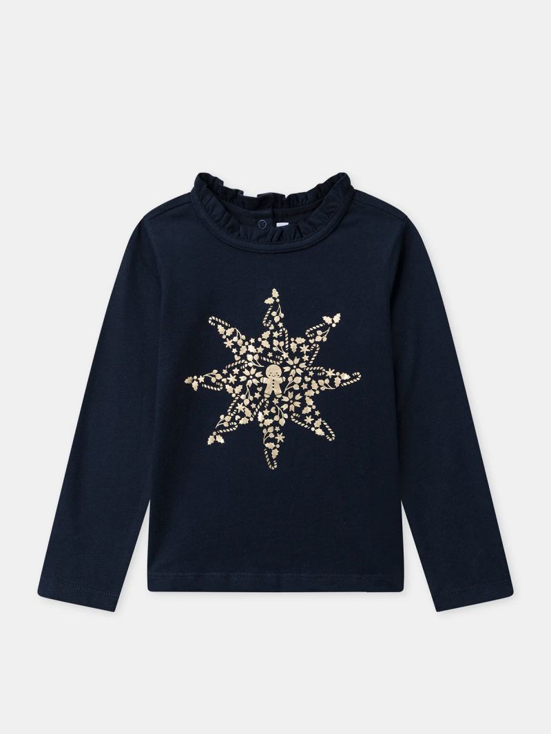 Тъмносиня блуза с дълъг ръкав със златна звезда за момичета