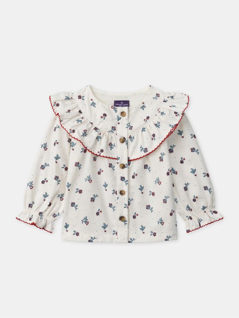 Тази блуза е създадена за малки момичета, които обичат да изглеждат красиво. Подходяща е за пролет и есен или за носене под жилетка. Изработена е от мек плат с флорален принт, а къдричките дават свобода и удобство. Контрастните шевове добавят фин завършек.