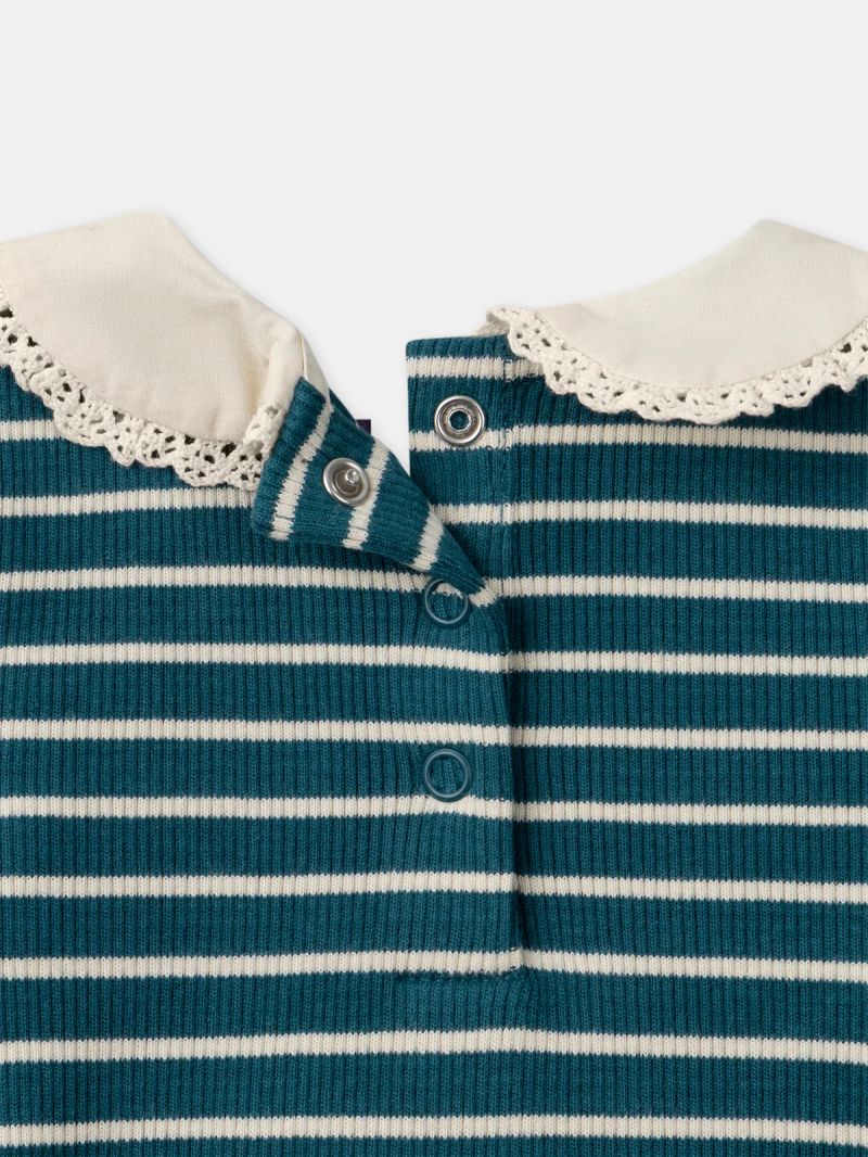 Рокля за бебе момиче в синьо и екрю на райета