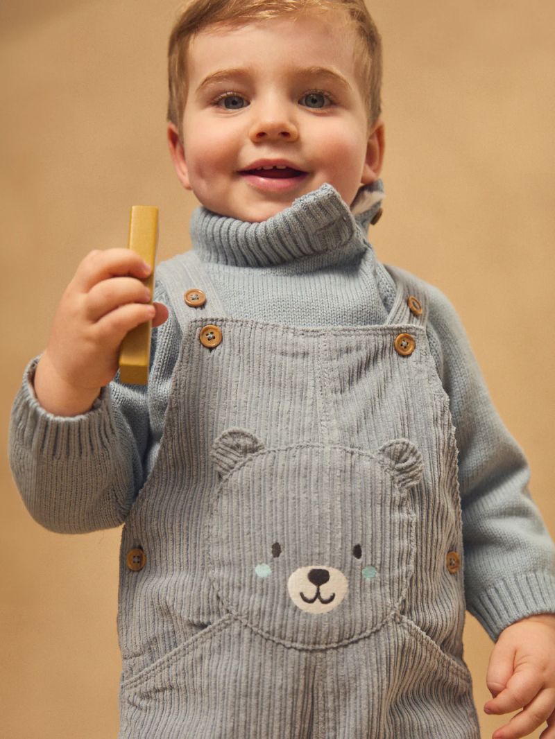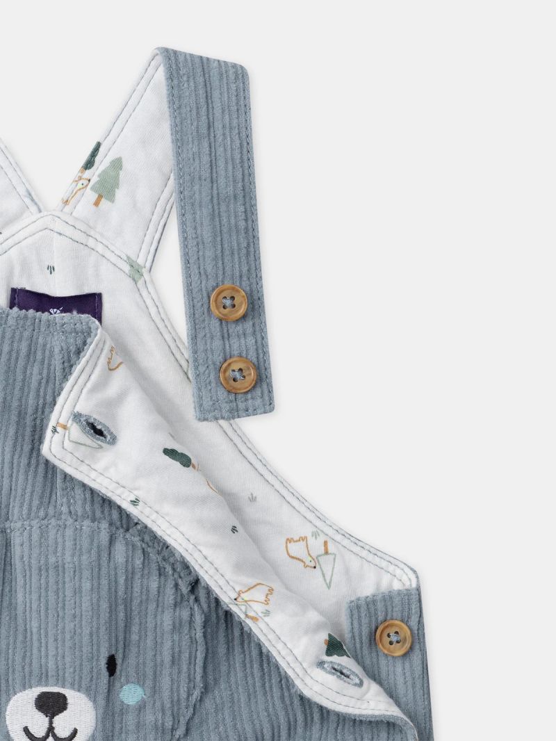 Този гащеризон е идеален за зимата и е подходящ за малките откриватели. Изработен е от мека кадифена материя, с регулируеми презрамки и удобни отвори за лесно обличане. Апликацията с бродирано мече и 3D ушички добавя сладък и игрив акцент.