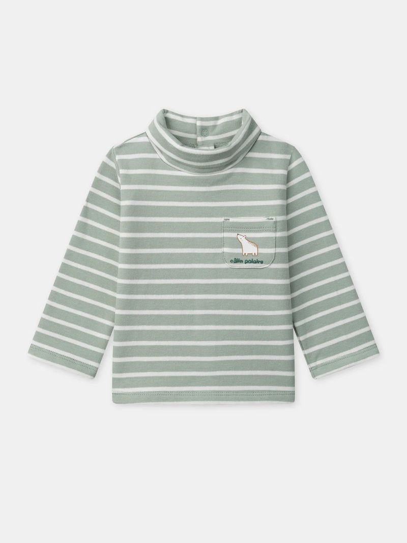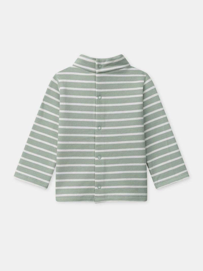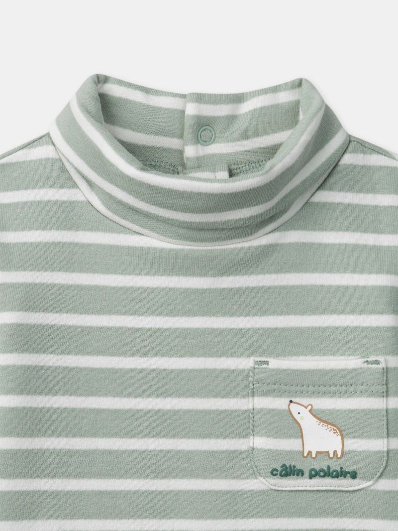 Начало ДРЕХИ ЗА БЕБЕ МОМЧЕ Зелена блуза с бели райета и дълъг ръкав за бебе момче