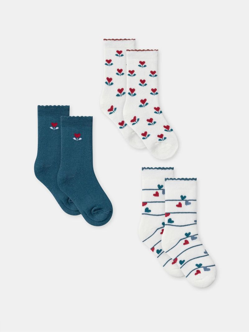 Комплект от 3 чифта чорапи с цветя и сърца за бебе момиче