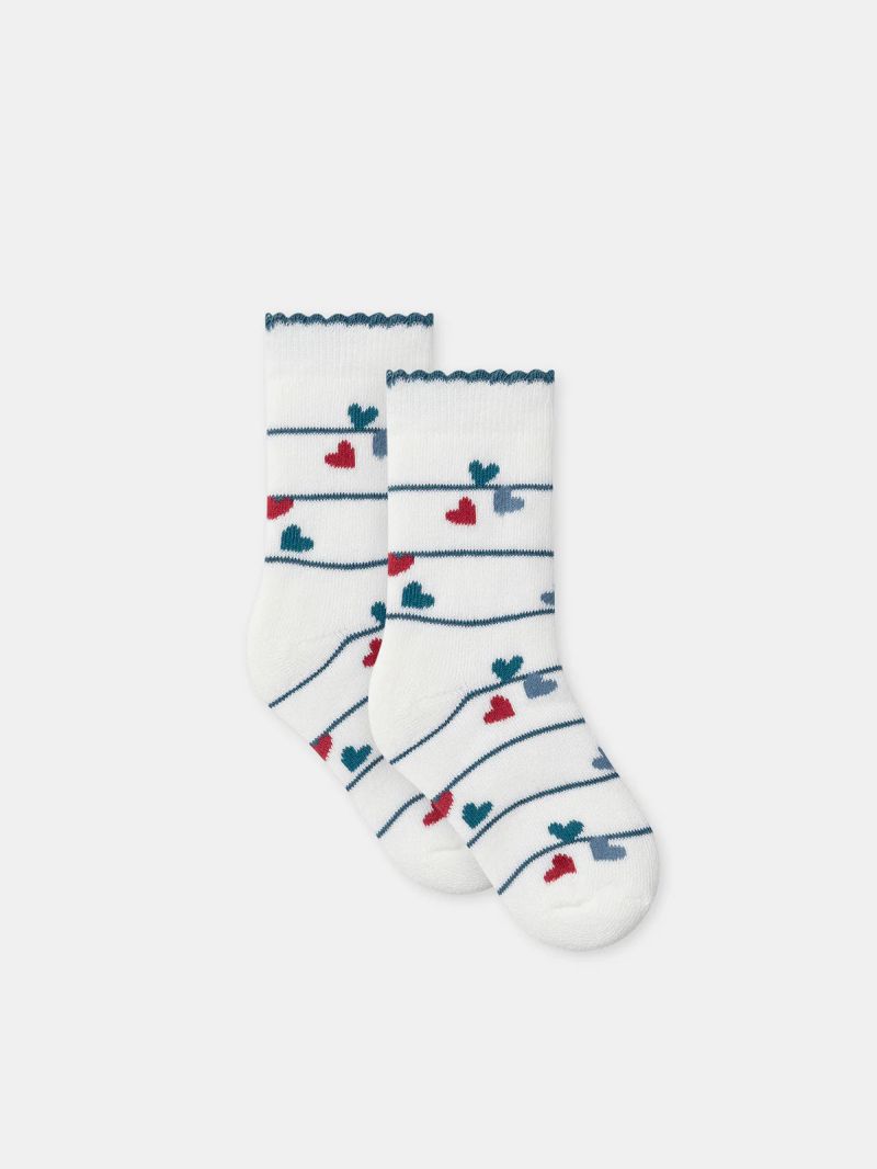 Тези чорапи са идеални за зимата и топлят крачетата всеки ден. Мекият памук ги прави комфортни за носене. Райетата, сърцата и цветните мотиви добавят цвят и игривост.