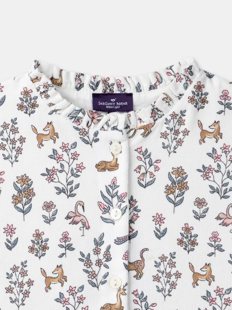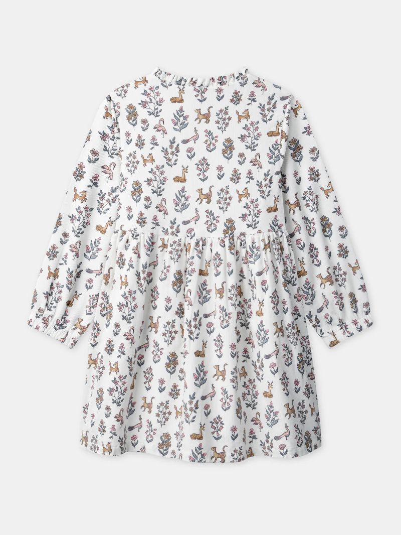 Начало Детски дрехи за момиче Бяла рокля с флорален и животински принт за момиче