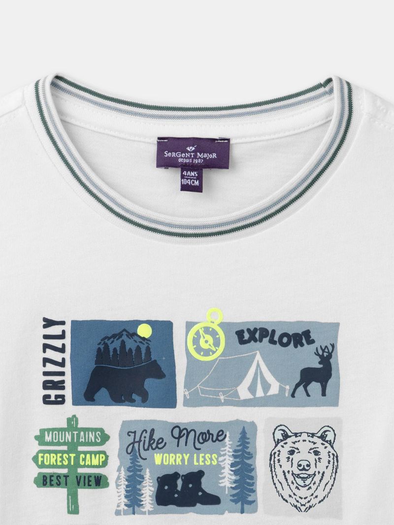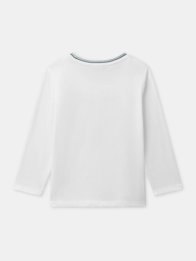 Бяла блуза с дълъг ръкав и животински принт за момче