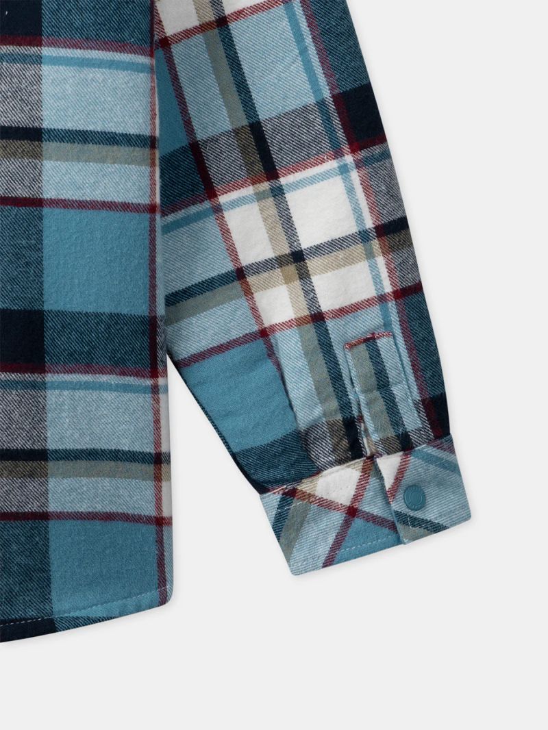 - Топла синя карирана риза: Мека фланела с топла подплата