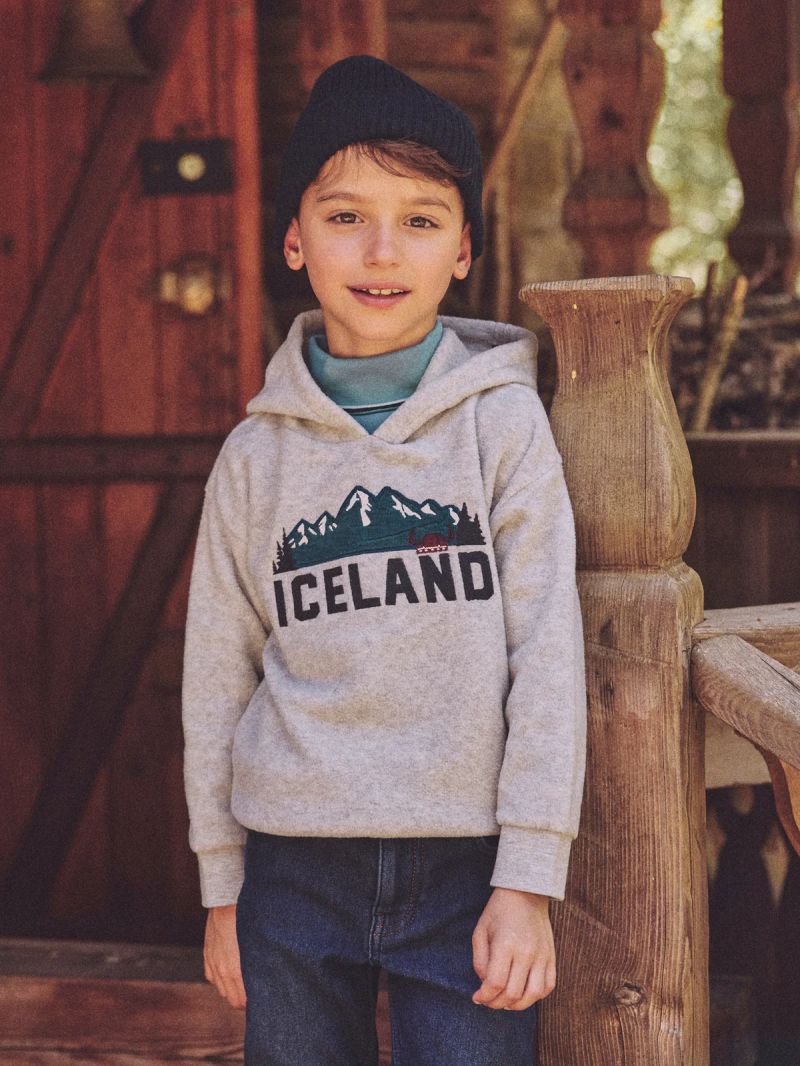 Този сив суитшърт е идеален за активни момчета през студените дни. Меката му материя и удобната качулка осигуряват топлина, а модерните детайли добавят стил към всяко ежедневие.