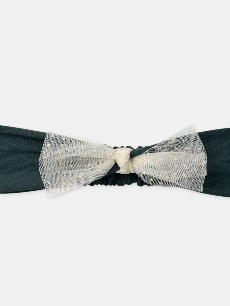 Тази лента за коса е перфектно допълнение към празничните тоалети и може да се носи както през зимата, така и в преходните сезони. Изработена от меко еластично трико в тъмнозелено, тя осигурява комфорт през целия ден. Златистата пайетена панделка отпред придава истински празничен и сияен акцент.