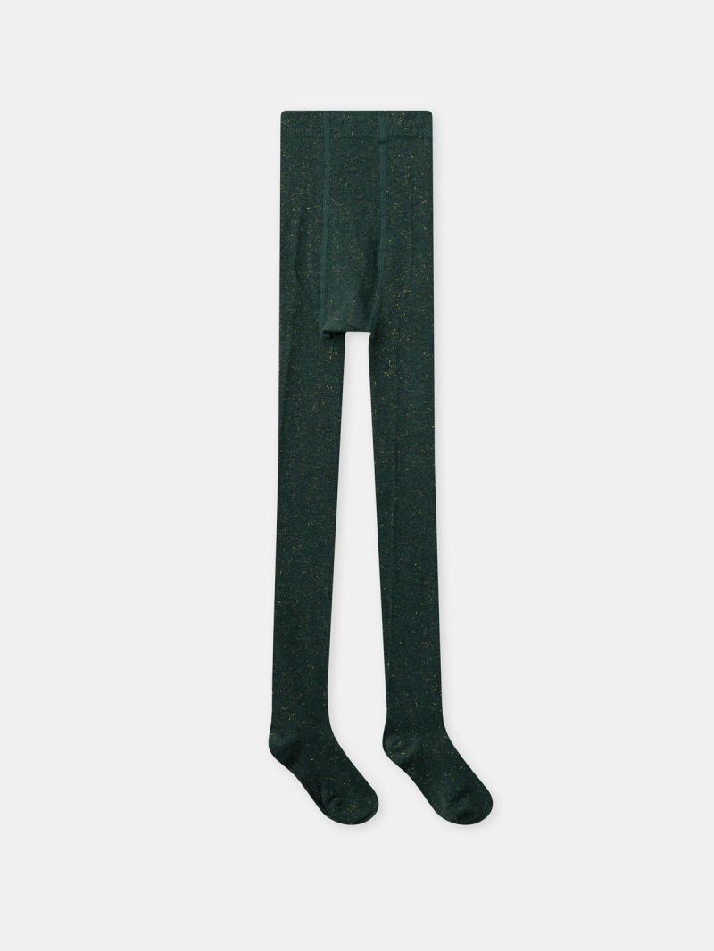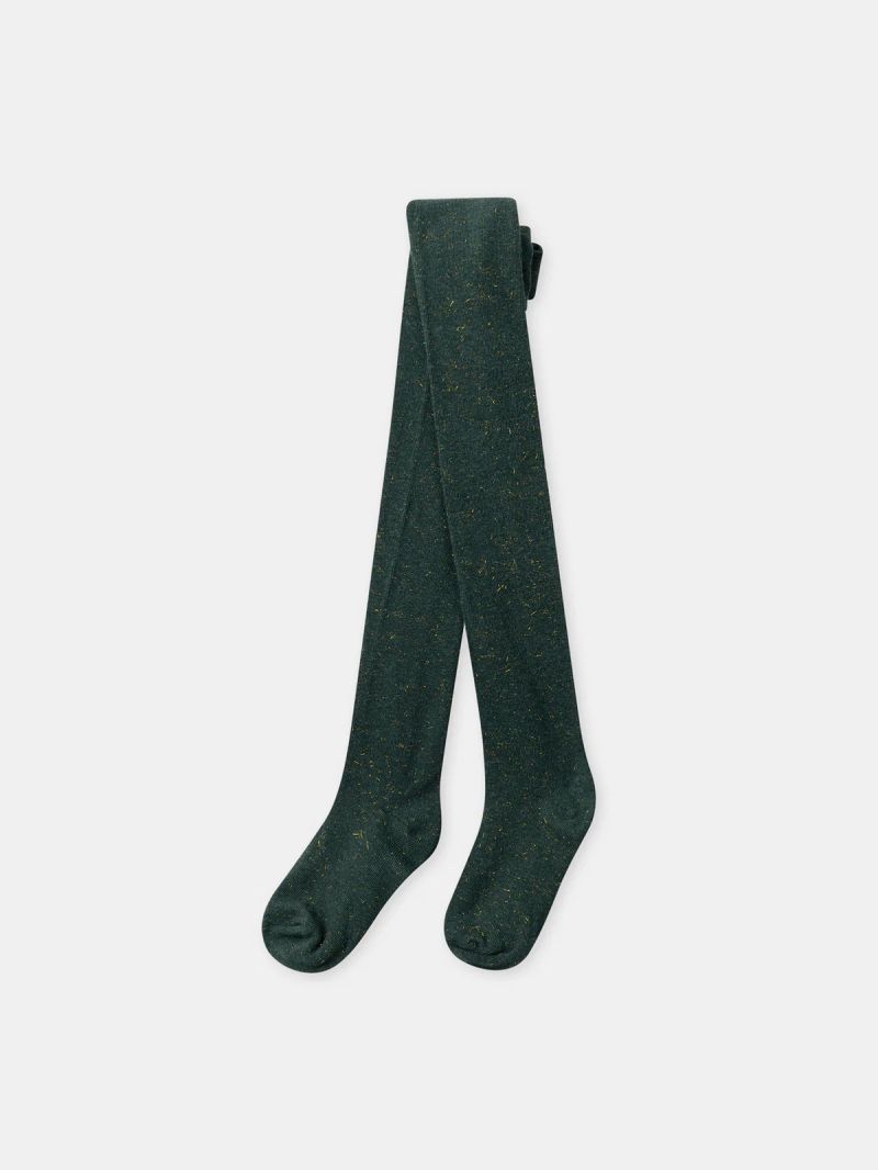 Идеален за зимните тоалети, този чорапогащ държи децата топли с изящна елегантност. Нежното зелено плетиво е украсено със златисти блестящи нишки, които добавят сияен акцент. Перфектно се вписва в празничната атмосфера и придава вълшебно излъчване на всяка визия.