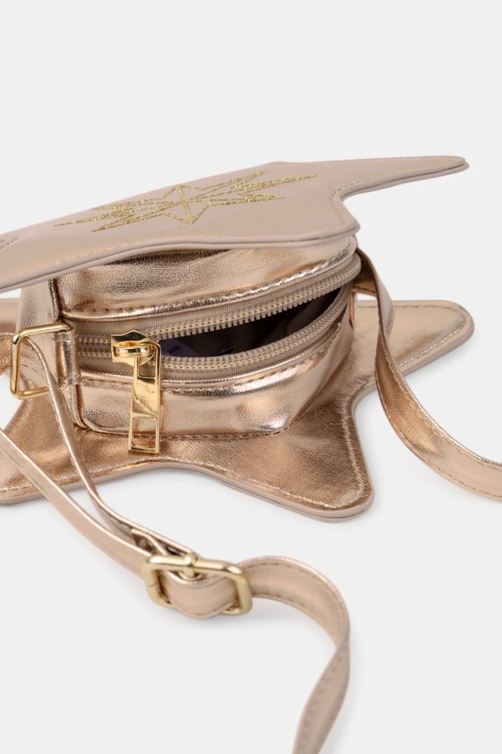 Идеална за празничния сезон, тази чанта носи истинско празнично настроение на всяко дете. Формата на звезда и блестящият ѝ дизайн добавят уникалност и чар. Регулируемата дръжка я прави удобна и практична за ежедневни приключения.