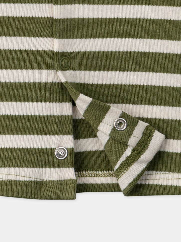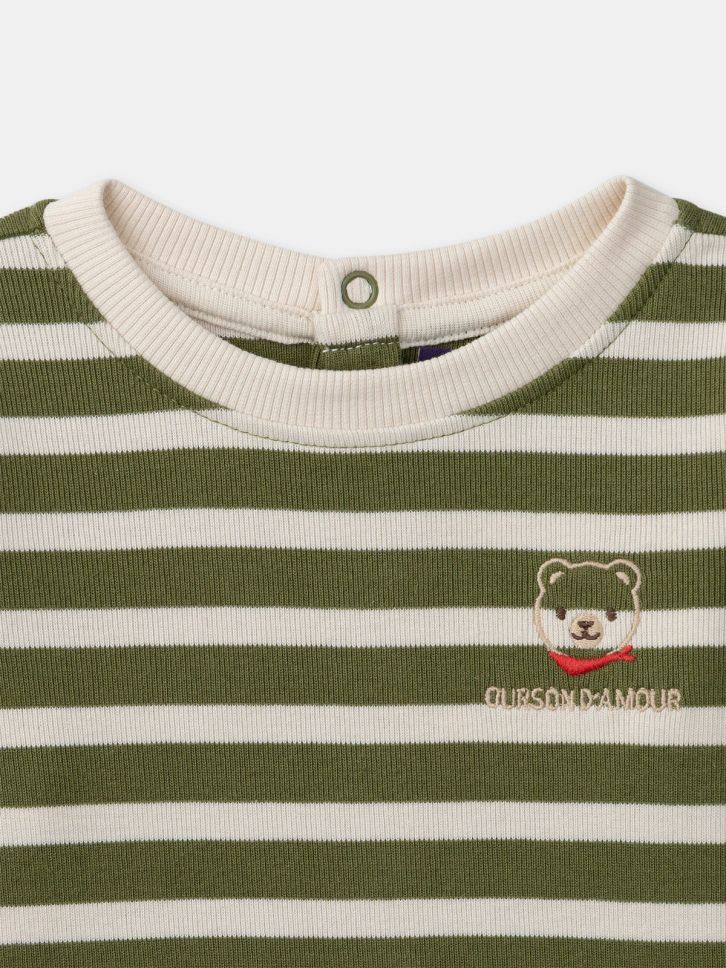 Мекото трико и копчетата тик-так по гърба улесняват обличането. Бродираното мече добавя мил и закачлив детайл.