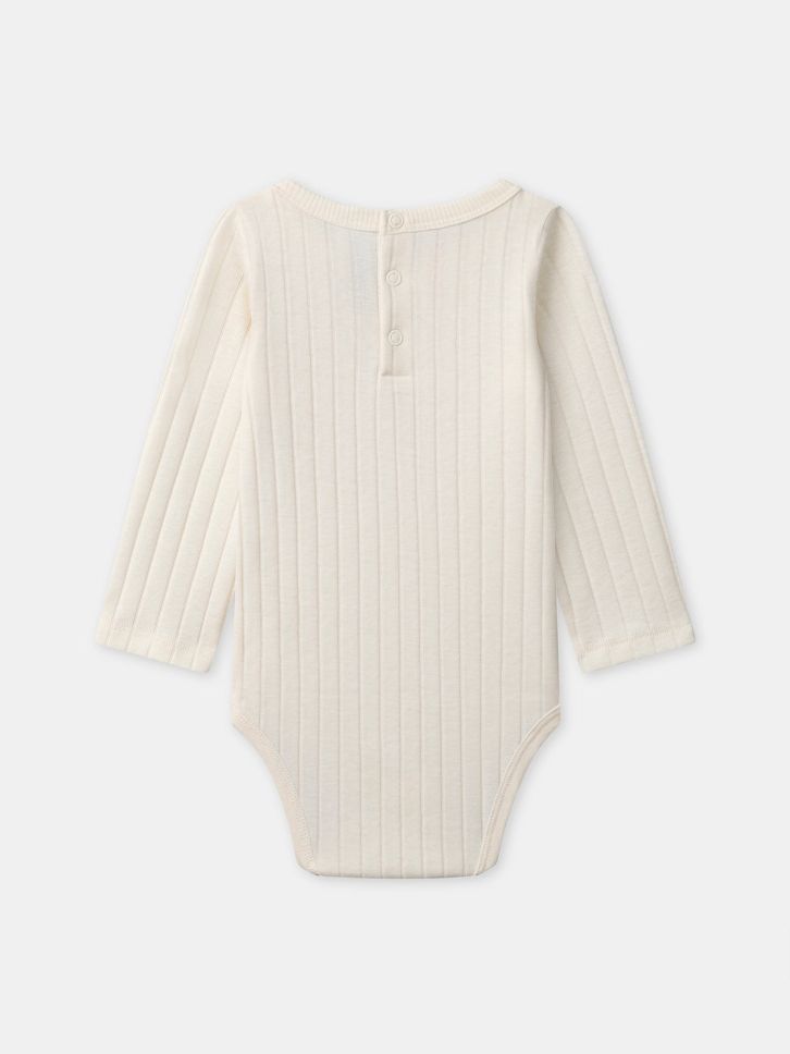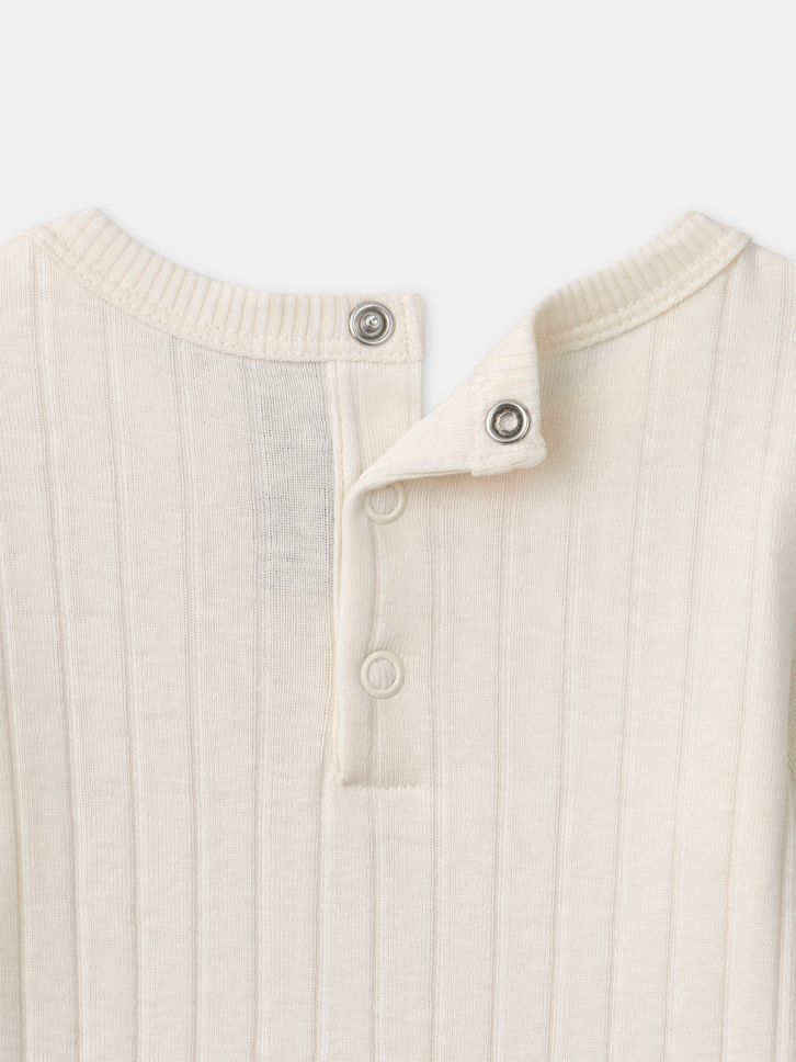 Рипсеното памучно трико и тик-так копчетата улесняват обличането. Принтът с охлюв и мече създава нежен и приказен свят.