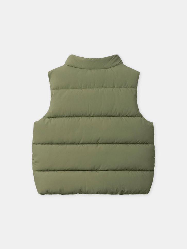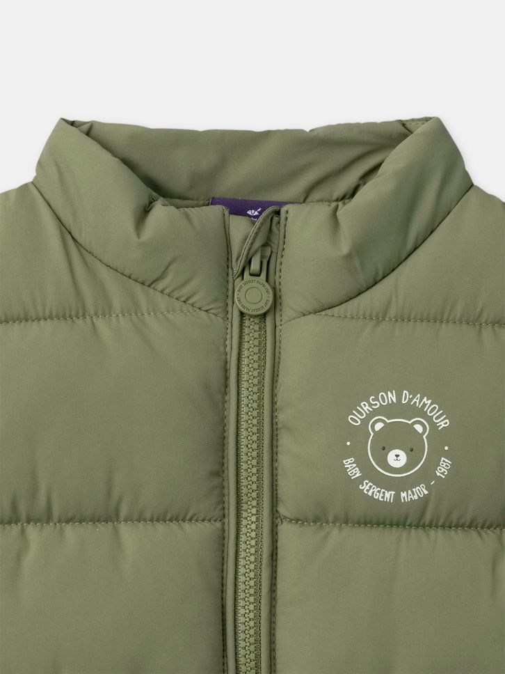 Капитонираната материя и ципът осигуряват комфорт и лека топлина. Принтът с мече и контрастната вътрешна част придават закачлив акцент.