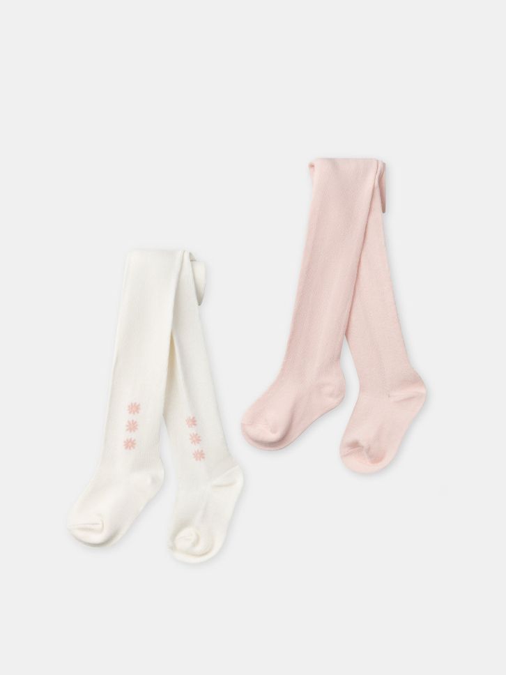 КОМПЛЕКТ ОТ 2 ЧИФТА ЧОРАПОГАЩИ В ЦВЯТ ЕКРЮ И РОЗОВО ЗА БЕБЕ МОМИЧЕТА