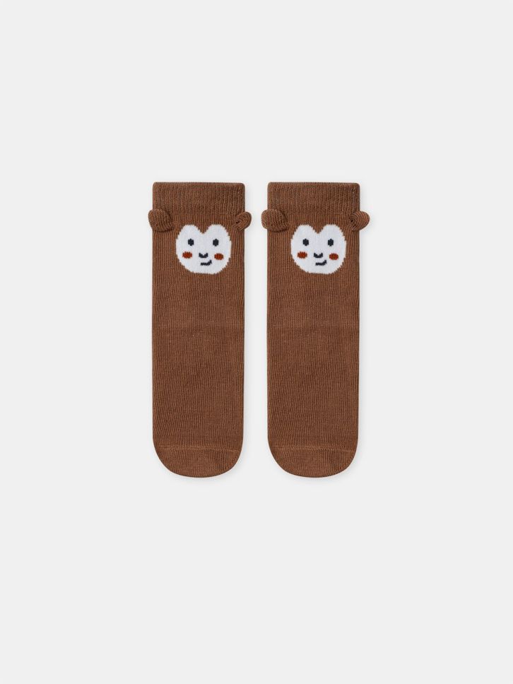 Кафяви чорапи с маймунка за бебе момче