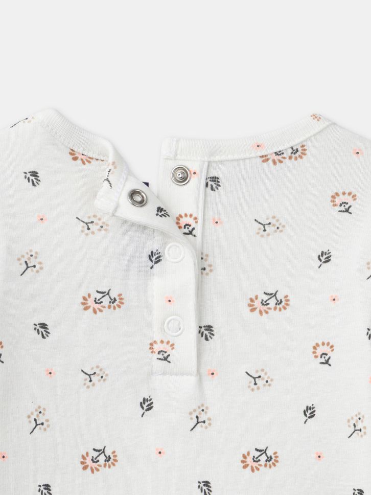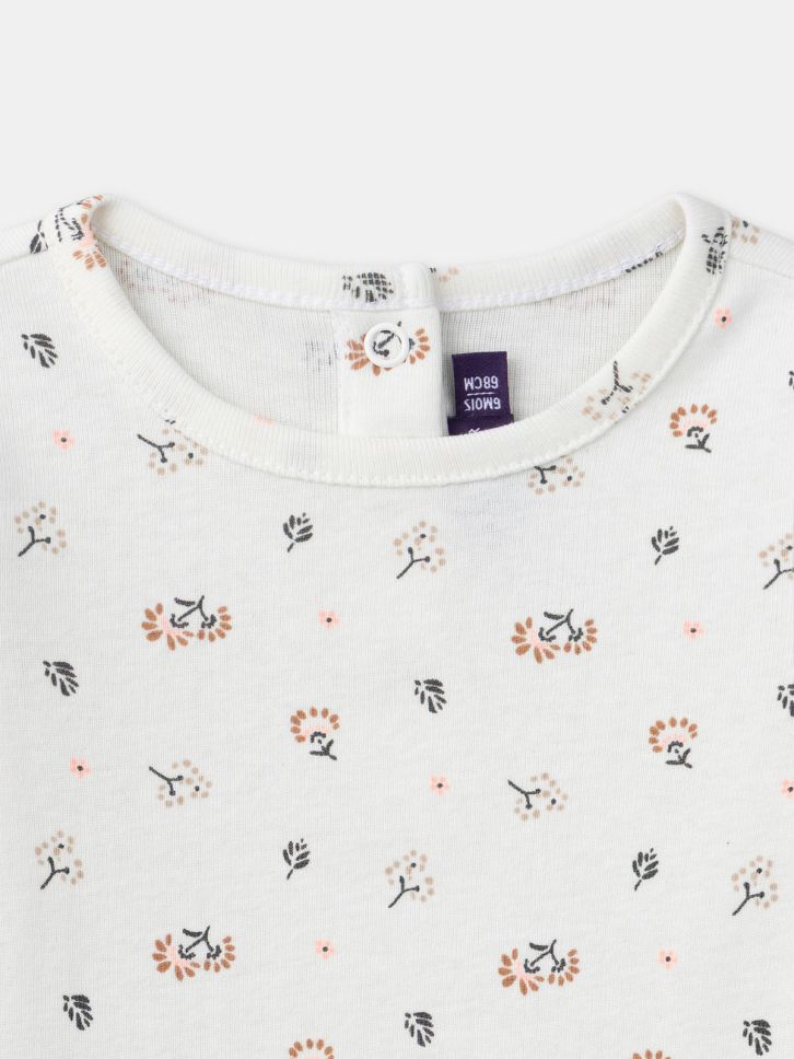 Екрю рипсено боди с флорален принт в бежово, тъмносиво и коралово