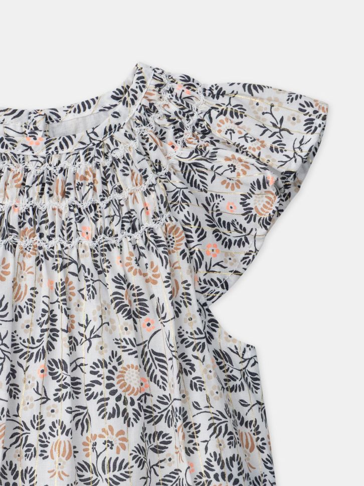 Флорален принт в бежово, тъмносиво и коралово с златисти метализирани нишки
