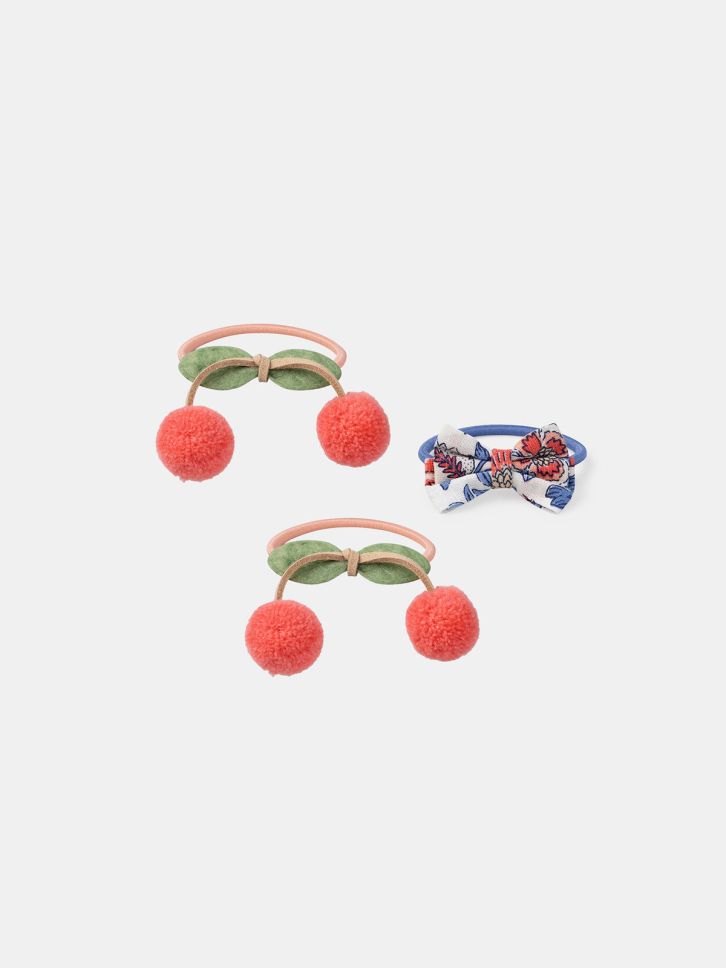 КОМПЛЕКТ ОТ 3 ЛАСТИКА С ПАНДЕЛКА И ПОМПОНИ „ЯГОДКИ“ ЗА МОМИЧЕ