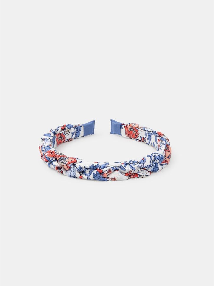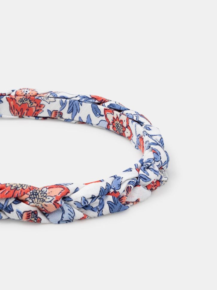 Плетената диадема от текстил е мека и удобна за носене. Флоралният принт добавя свежест и нежност към визията.